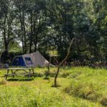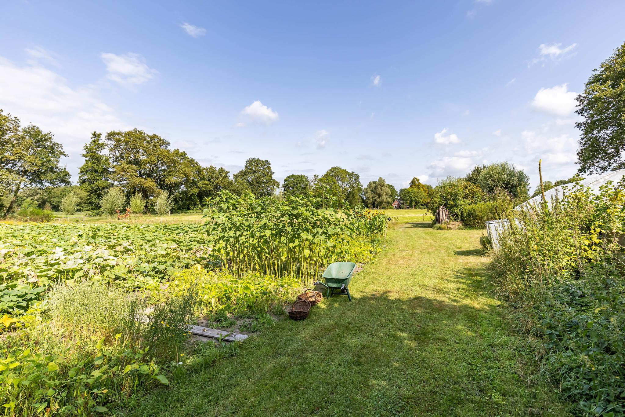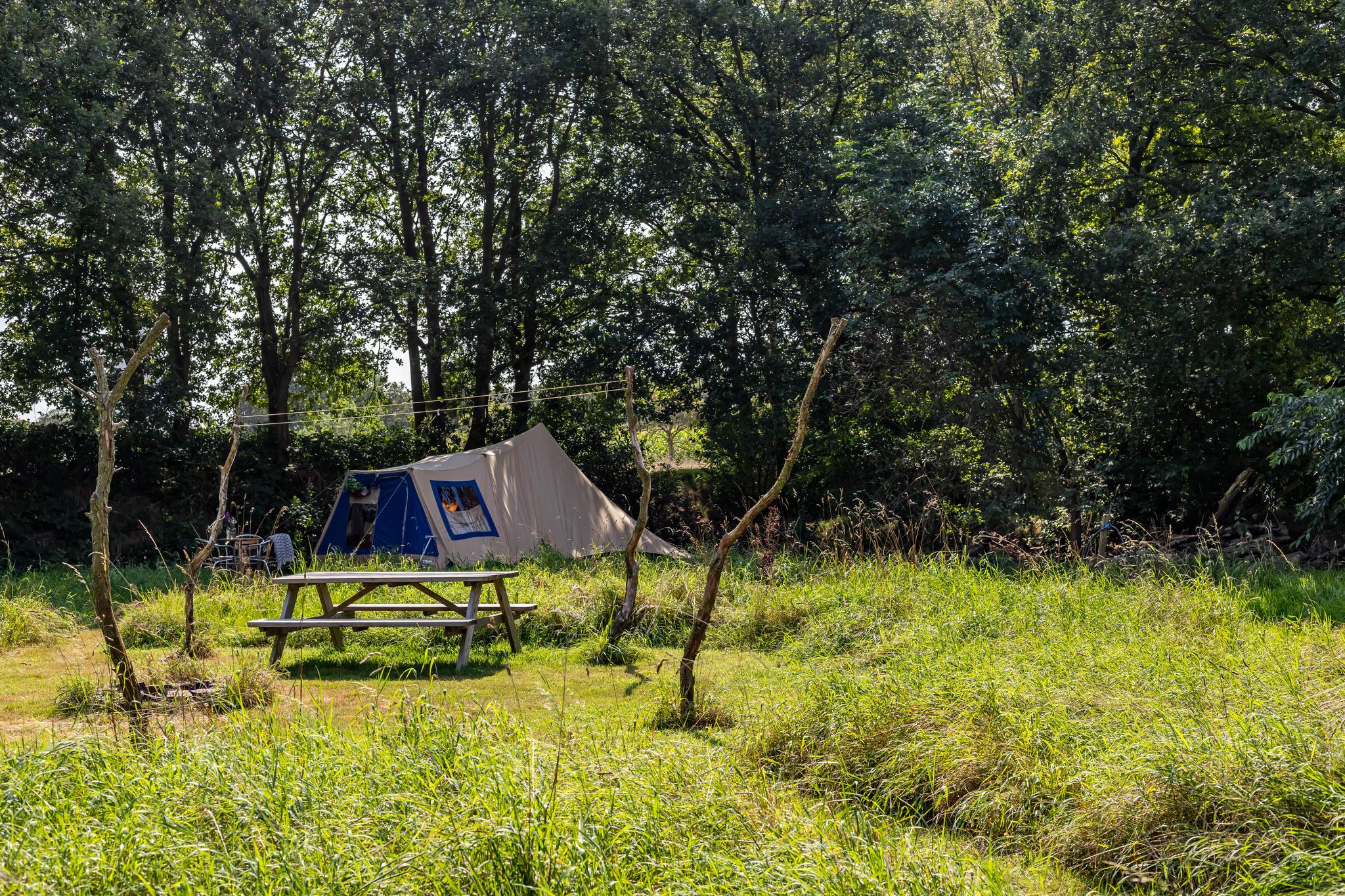 Langs de lange oprijlaan is aan beide zijden weiland. Het woonperceel is goed verdeeld over privé en camping. De camping aan de achterzijde en de zijkant heeft momenteel een minimale bezetting van verschillende accomodaties zoals tipitenten, caravans en glampingtenten. Dit kan makkelijk uitgebreid worden om zo de omzet te verhogen.