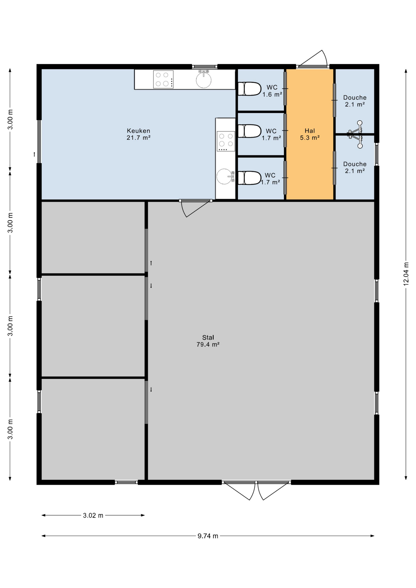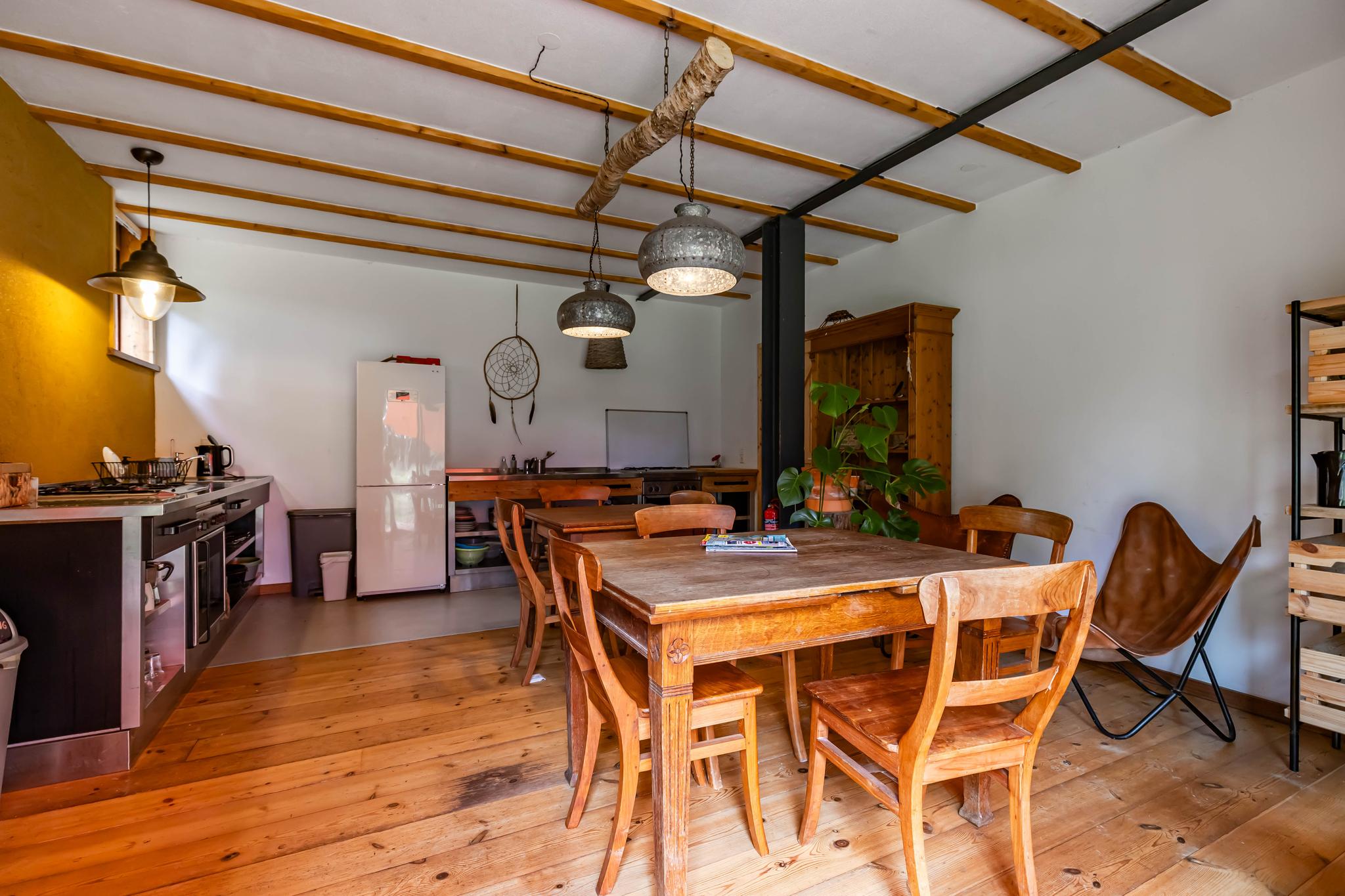 De grote schuur is verdeeld in opslag (mogelijkheid voor terugplaatsen paardenboxen), een gemeenschappelijke ruimte voor de camping waar de gasten kunnen koken, eten en relaxen (zowel binnen als buiten). Daarnaast bevinden zich in deze grote schuur meerdere toiletten en twee doucheruimtes.