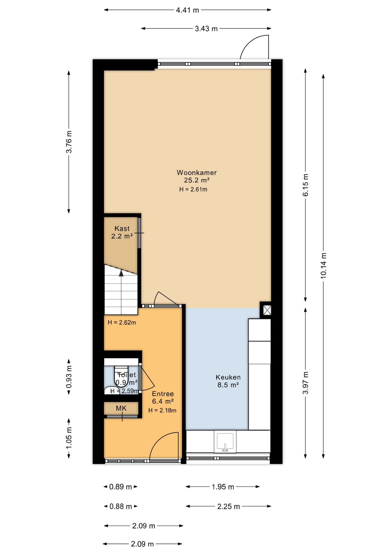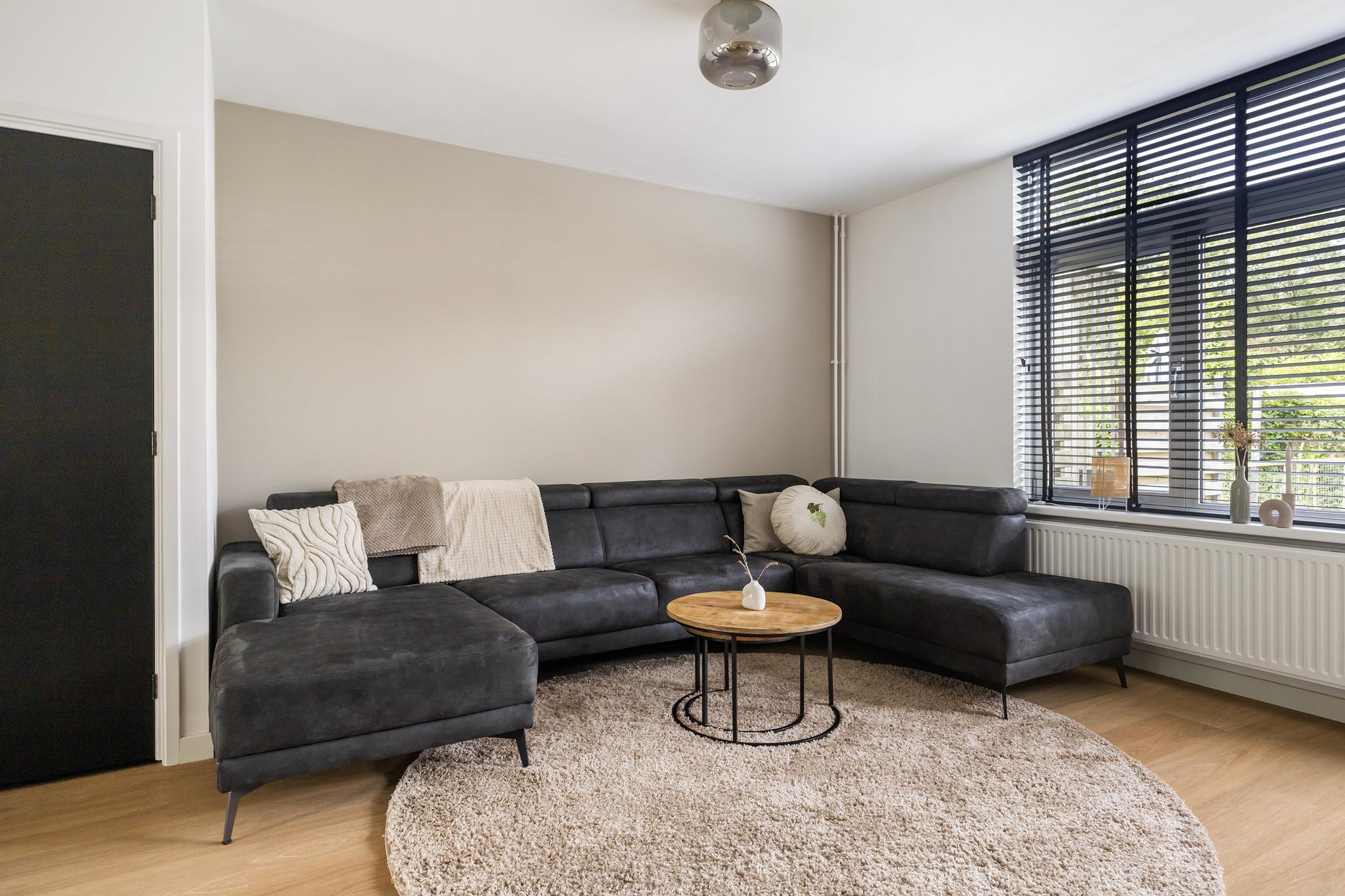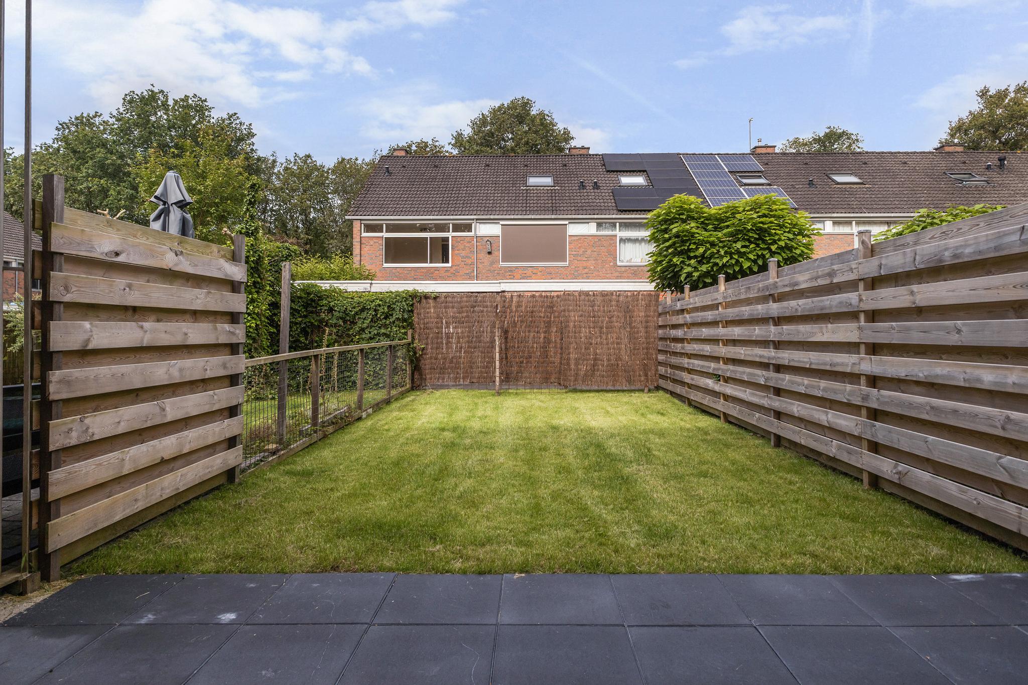 Entree, meterkast met waterontharder, modern toilet met fonteintje. De woonkamer is gezellig, is voorzien van een mooie PVC vloer en is tuingericht. De tuin heeft een lekker terras en er is een achterom. De keuken uit 2022 is ruim en heeft veel kastruimte. Er is een koelkast en een vriezer, een vaatwasmachine en een inductie vierpitskookplaat met afzuigkap. Via de gang gaan we naar boven, de trap is prachtig gerenoveerd.
