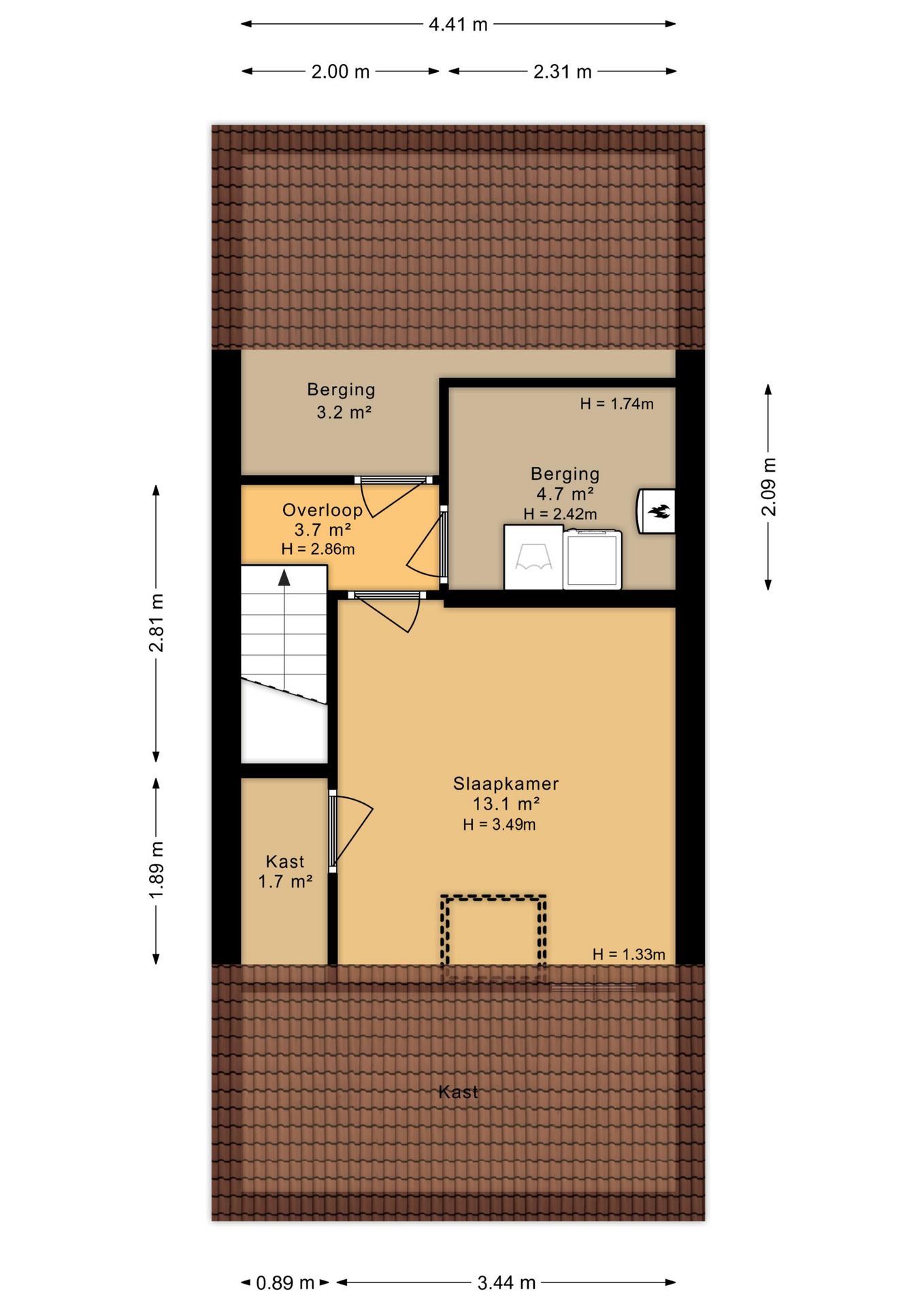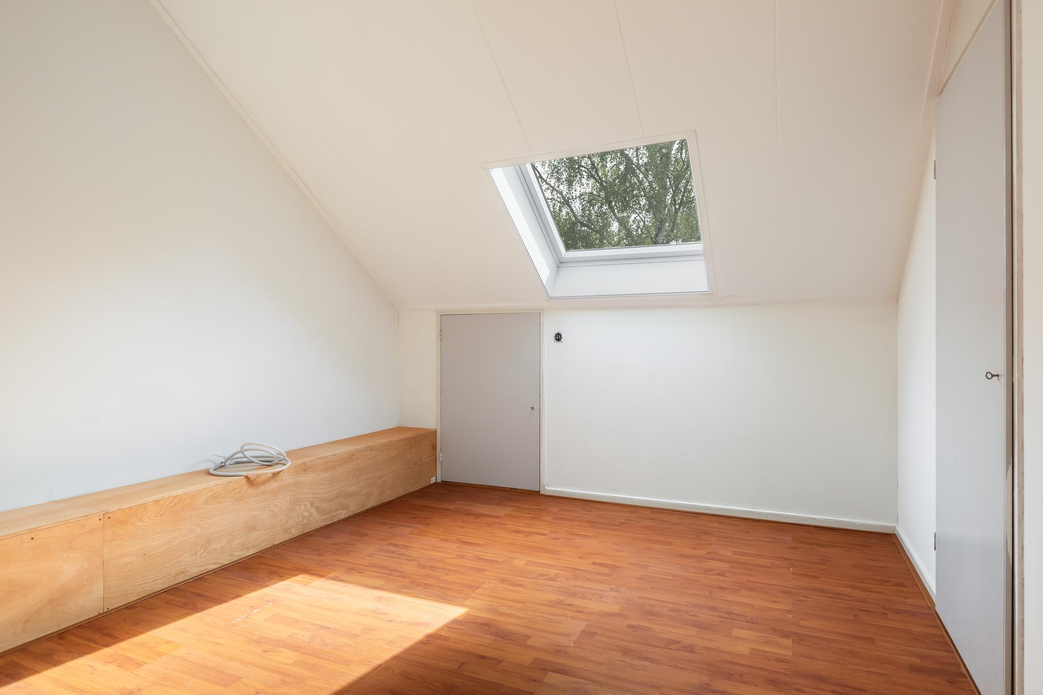 Hier kan nog het één en ander worden afgewerkt. Er is een royale ruimte voor de wasmachine en de droger. Ook de CV-ketel hangt hier. Er is erg veel opbergruimte en de vierde zeer ruime slaapkamer bevindt zich hier.