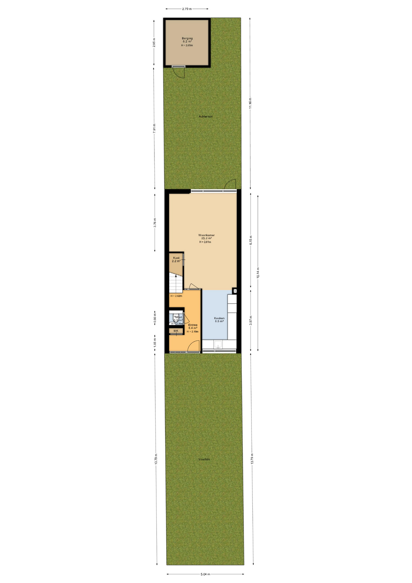 Aan de straatzijde, bij de voortuin is een vrijstaande stenen schuur. Via de voortuin loop je naar de voordeur.
