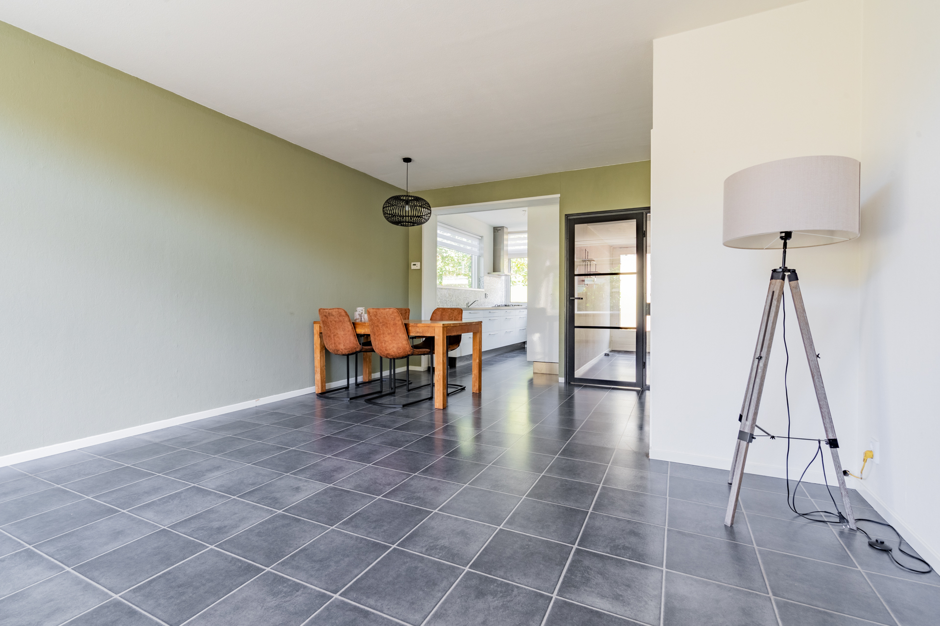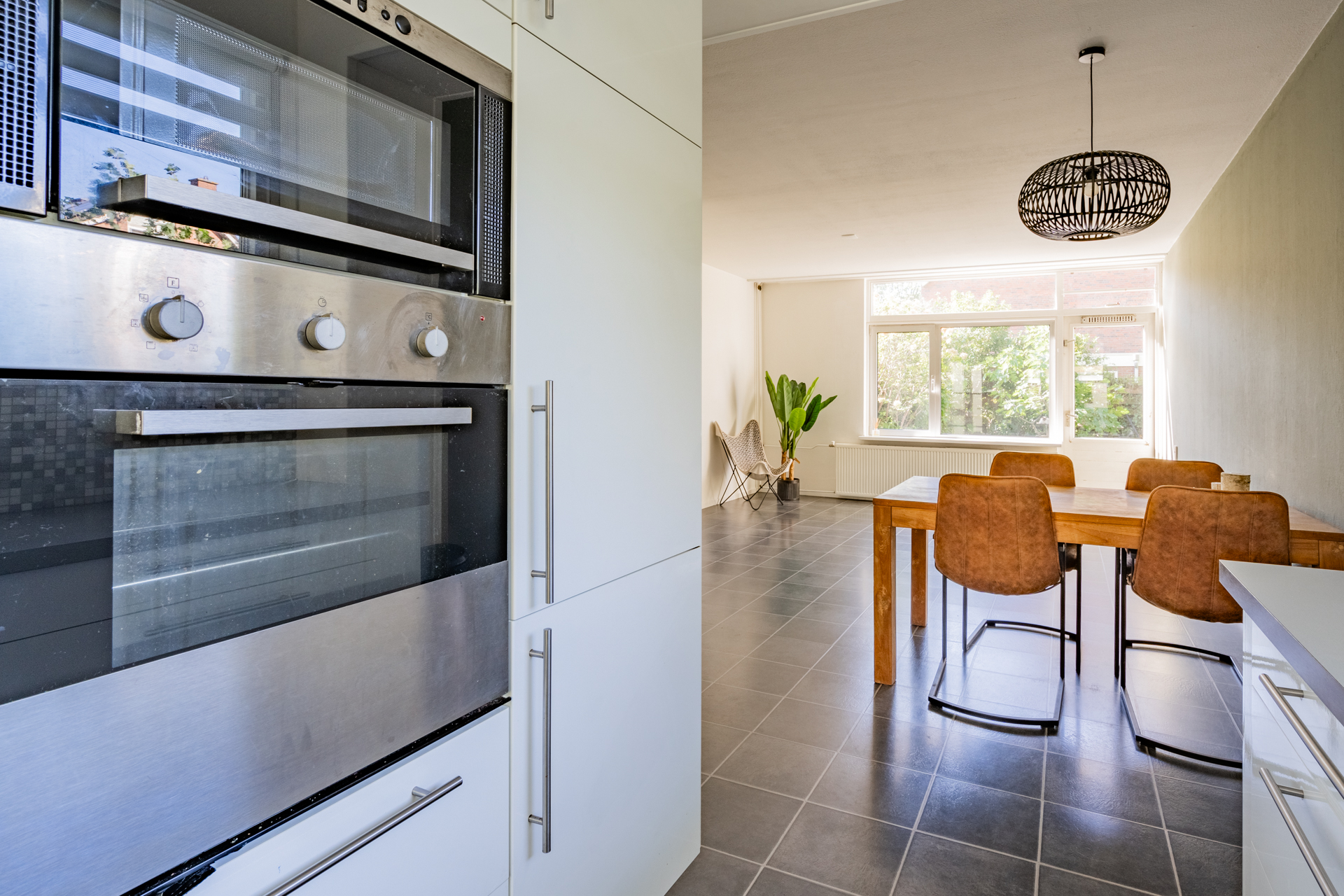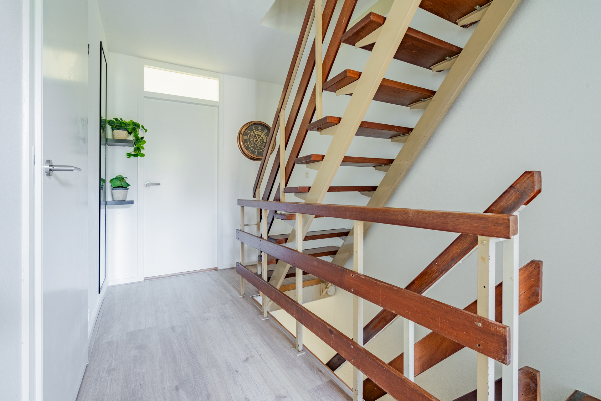 Voordat je bij de voordeur komt loop je door de voortuin, langs de handige stenen schuur. De entree van de woning is licht, hier zijn de meterkast en het toilet. De tuingerichte woonkamer biedt toegang tot de moderne witte keuken. Ook hier valt op dat het licht is door het extra zijraam in de keuken. Via de gang en de trap kom je op de eerste etage.