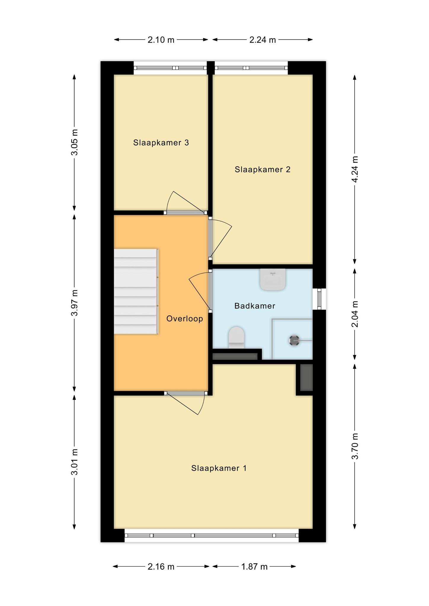 De eerste etage heeft drie goede slaapkamers en een moderne badkamer. De badkamer is sfeervol en heeft een wastafelmeubel, een inloopdouche en een tweede toilet.