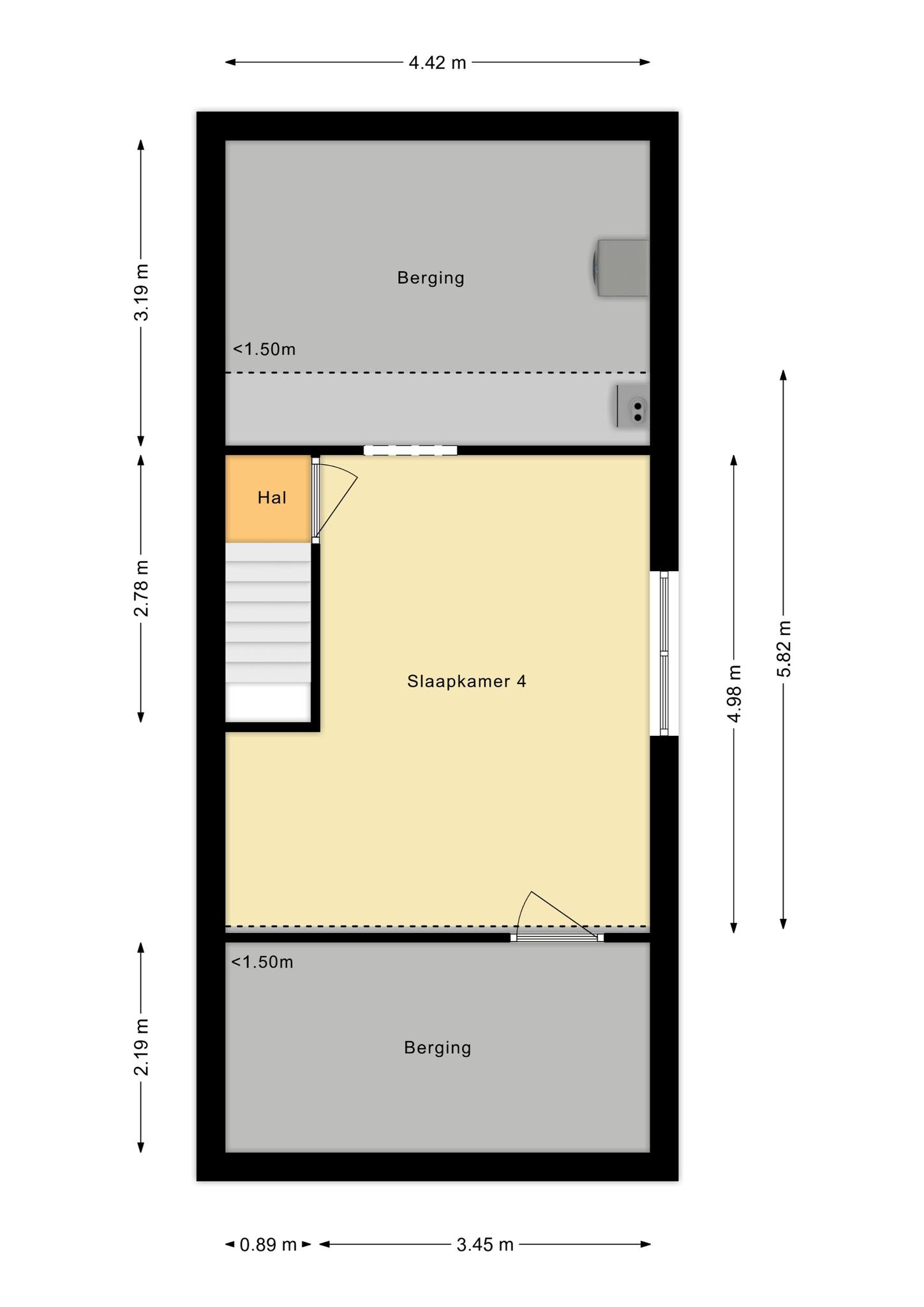 De tweede etage heeft nog de originele indeling, een grote slaapkamer en twee erg grote bergingen. Hier zijn de mogelijkheden legio: dakkapel, extra slaapkamer of nog een badkamer. De ruimte is er.