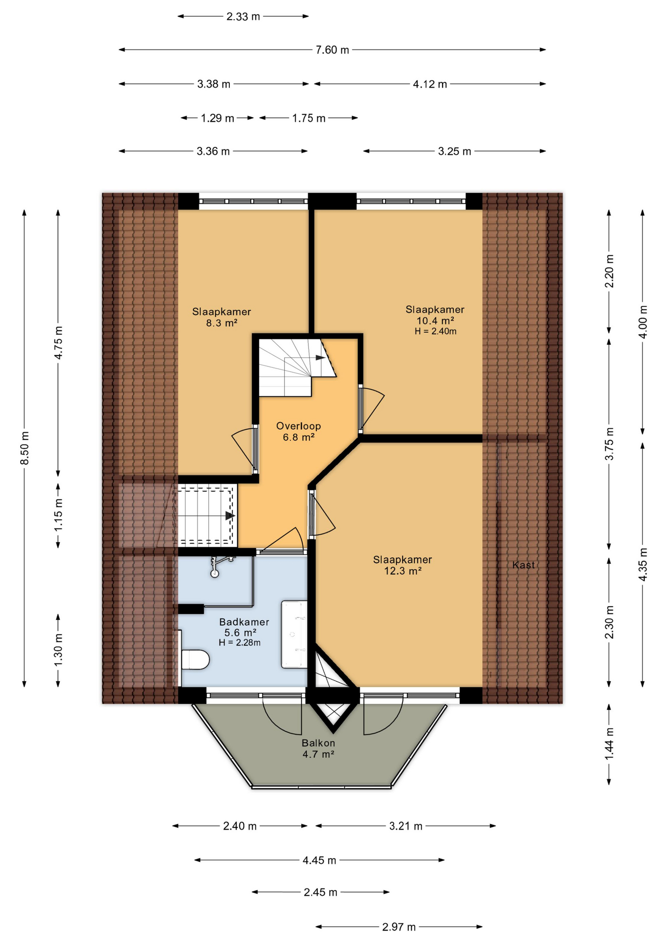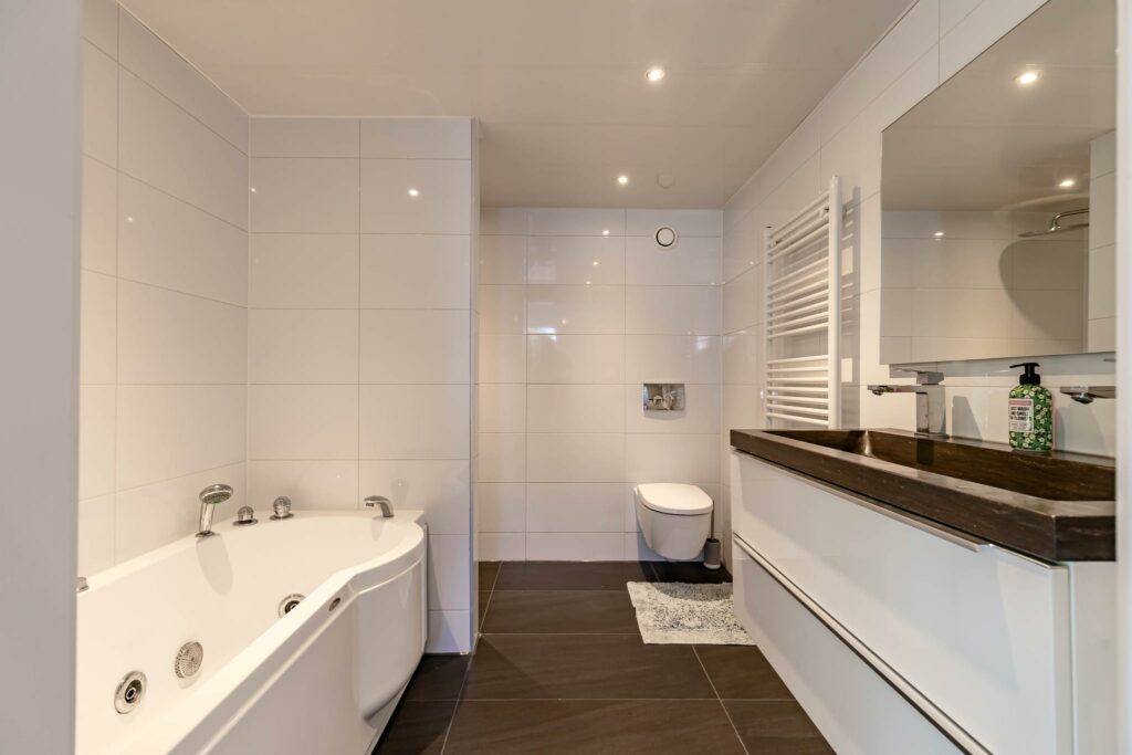 Via de trap is er toegang tot de eerste verdieping. De bovenverdieping is in mei 2024 gerenoveerd, waarbij ook een nieuwe, luxe badkamer is gerealiseerd. Er bevinden zich drie slaapkamers, welke in mei 2024 voorzien zijn van op maat gemaakte shutters en waarvan een van de slaapkamers beschikt over een balkon. Op de overloop is een vaste trap naar de zolderberging. Eventueel is hier een extra slaapkamer te realiseren. Daarnaast zal er ruimte overblijven voor een berging.