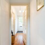 overloop, 2 slaapkamers, badkamer met douche, wastafel en toilet.