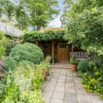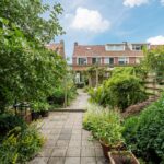 Leuke speelse groene tuin met houtenschuur achter op de tuin met toegang via steeg waar u zo het centrum inloopt.