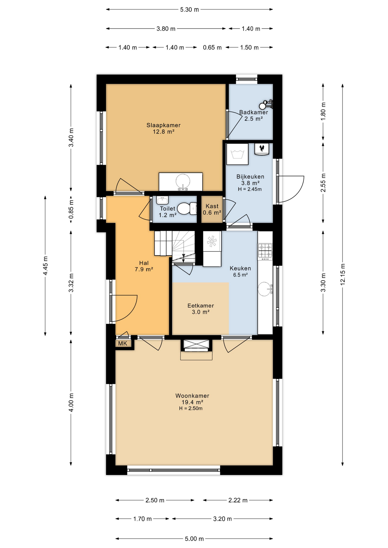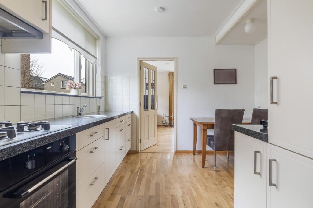 Via de voordeur komt u in de ruime hal met een toilet. De lichte woonkamer met grote ramen is aan de voorzijde gelegen. De zeer nette complete, dichte keuken met aansluitend een bijkeuken liggen aan de tuinzijde.