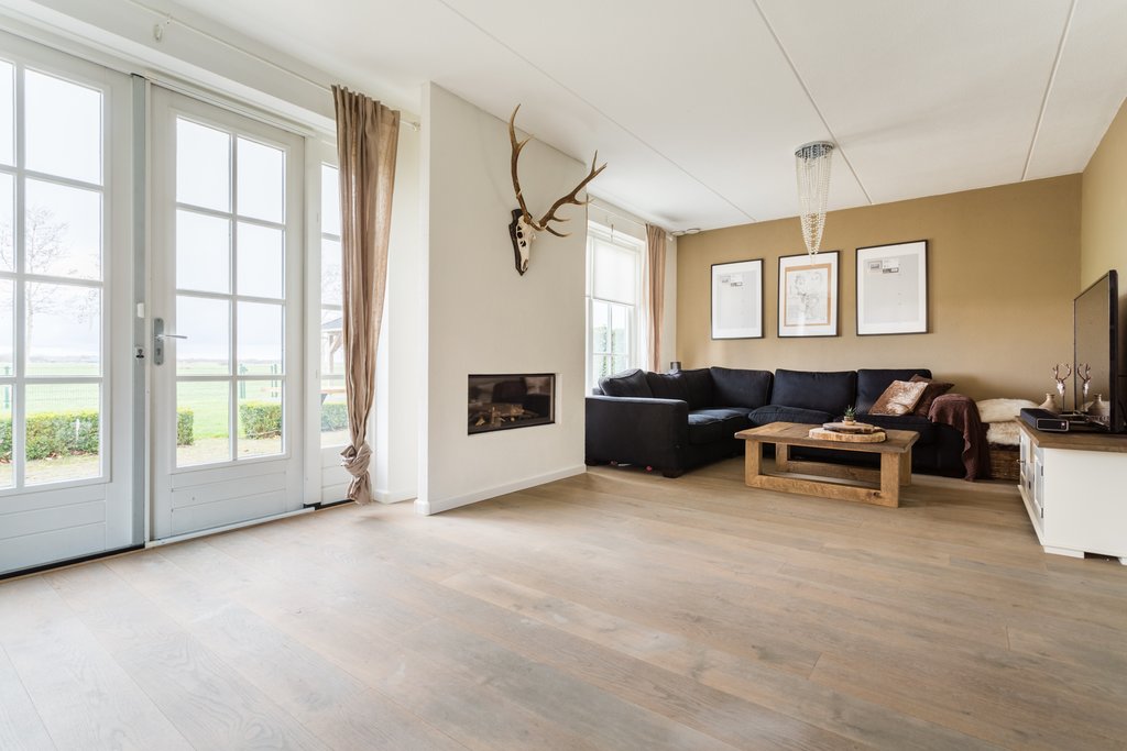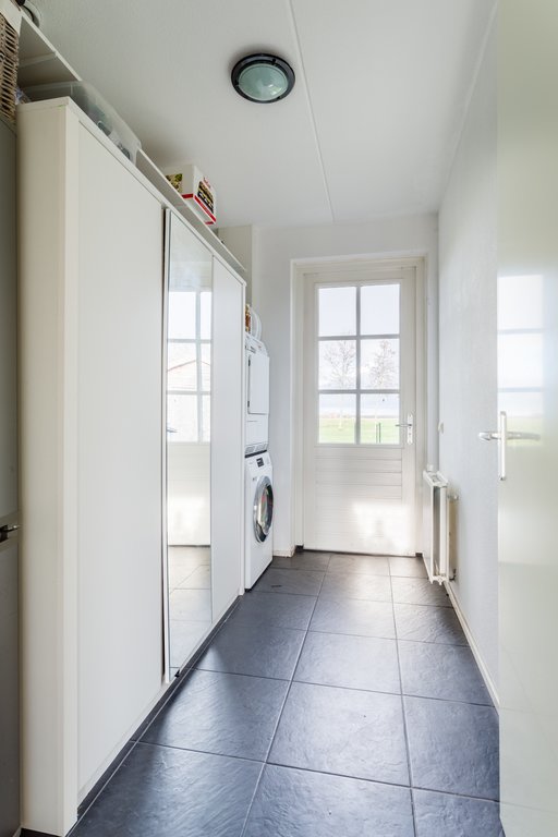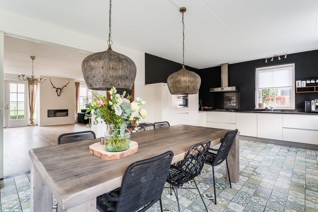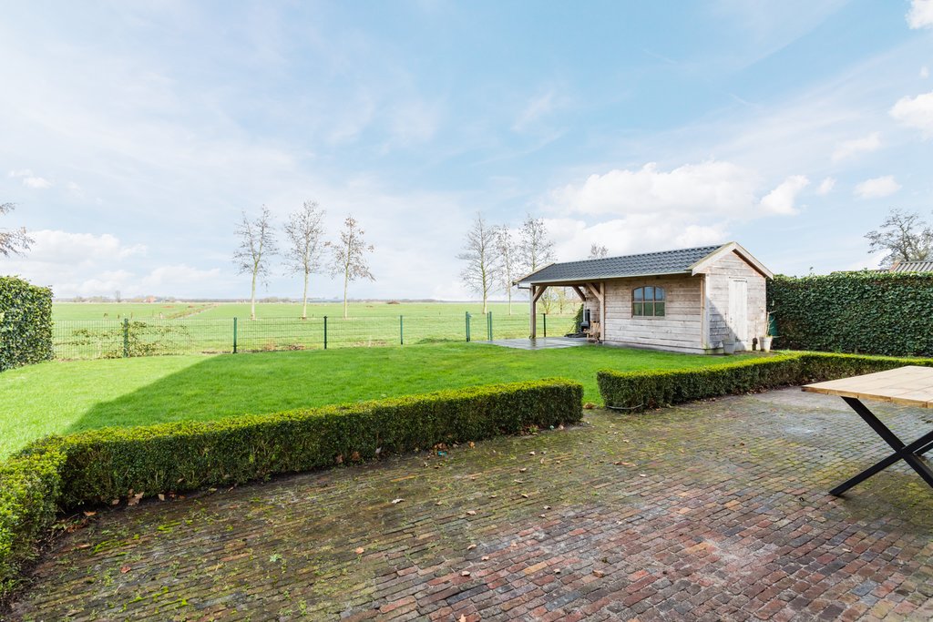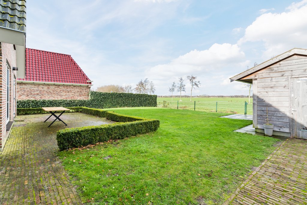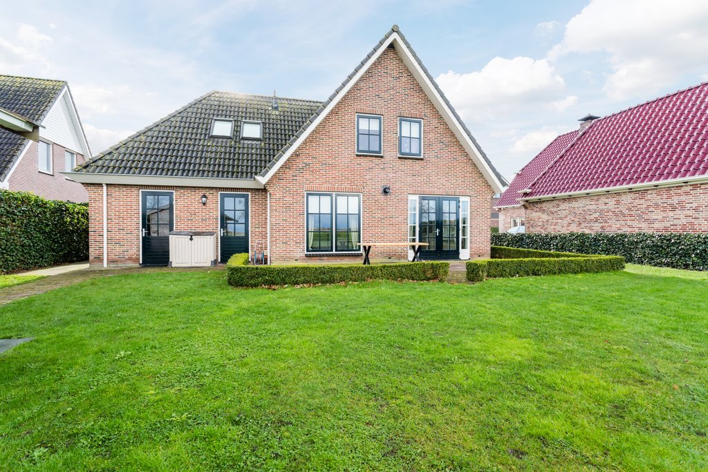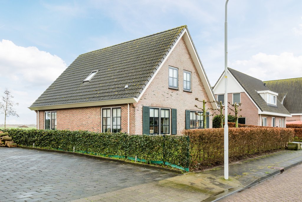 Royale vrijstaande woning met aangebouwde garage (goed onderhouden), schitterend gelegen direct aan de rand van het dorp, achter grenzend aan waterpartij en bevoorrecht met een blijvend fraai weids uitzicht vanuit veranda (overkapping) over de weilanden op 665m2 eigen grond.