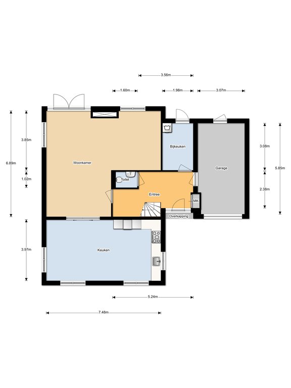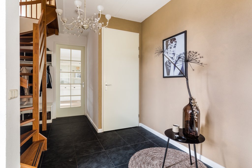 Bij de voordeur aangekomen, ruime hal met toilet, L-vormige woonkamer, eetkeuken met inbouwappatuur, bijkeuken, aangebouwde garage, houtenberging, veranda met prachtig uitzicht en tuin rondom.