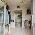 Ruime en lichte entree met een meterkast en een aparte toilet. Vanuit de hal is er toegang tot de badkamer en de slaapkamer. De slaapkamer is aan de achterzijde van de woning gelegen. De badkamer is ruim en licht en is voorzien van een fraai badkamermeubel en een douche. In de woonkamer met half open keuken heeft u vrij uitzicht over de voortuin en het weiland aan de overzijde van de staat. De keuken is van alle gemakken voorzien en heeft een koelkast welke in februari 2024 nog is vervangen. Via de keuken is er toegang tot de praktische bijkeuken waar er plaats is voor het witgoed. Via deze bijkeuken komt u in de garage.