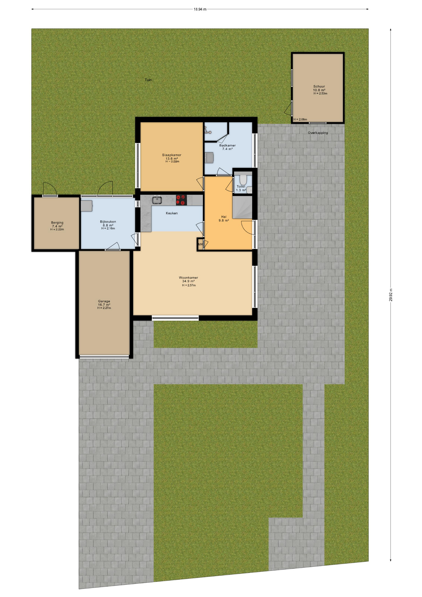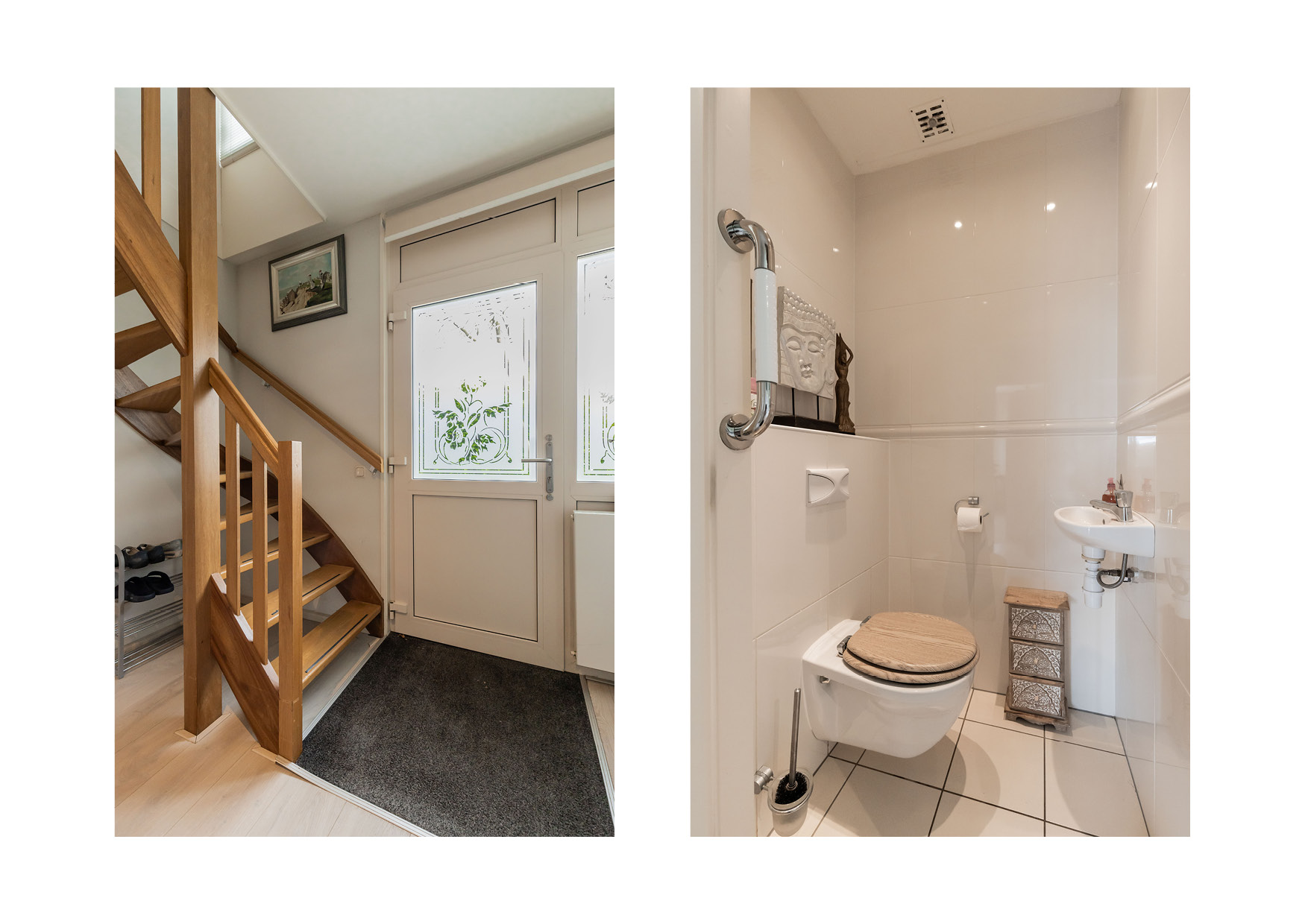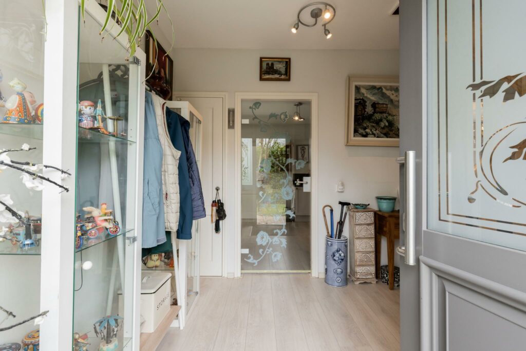 Ruime en lichte entree met een meterkast en een aparte toilet. Vanuit de hal is er toegang tot de badkamer en de slaapkamer. De slaapkamer is aan de achterzijde van de woning gelegen. De badkamer is ruim en licht en is voorzien van een fraai badkamermeubel en een douche. In de woonkamer met half open keuken heeft u vrij uitzicht over de voortuin en het weiland aan de overzijde van de staat. De keuken is van alle gemakken voorzien en heeft een koelkast welke in februari 2024 nog is vervangen. Via de keuken is er toegang tot de praktische bijkeuken waar er plaats is voor het witgoed. Via deze bijkeuken komt u in de garage.