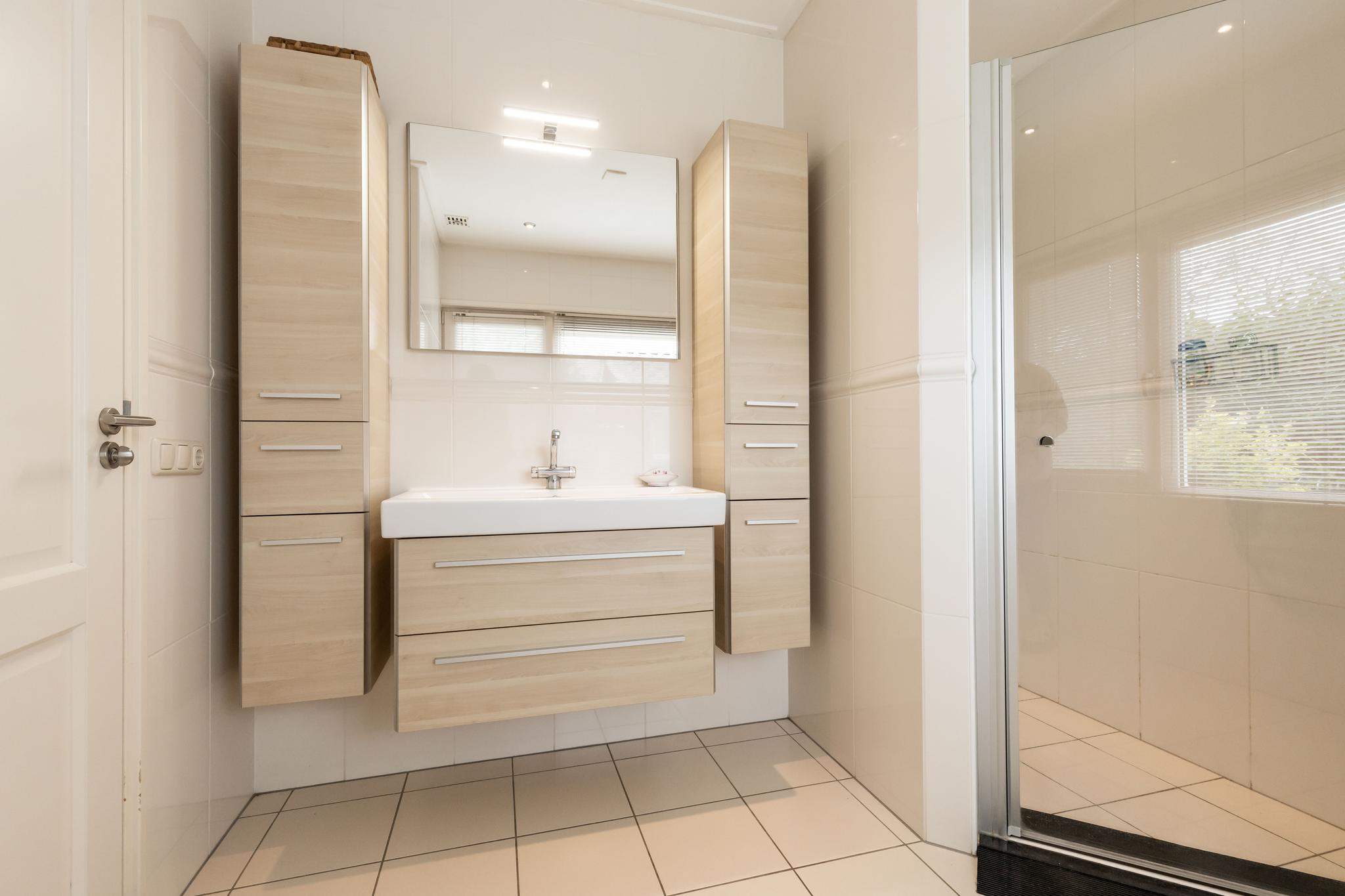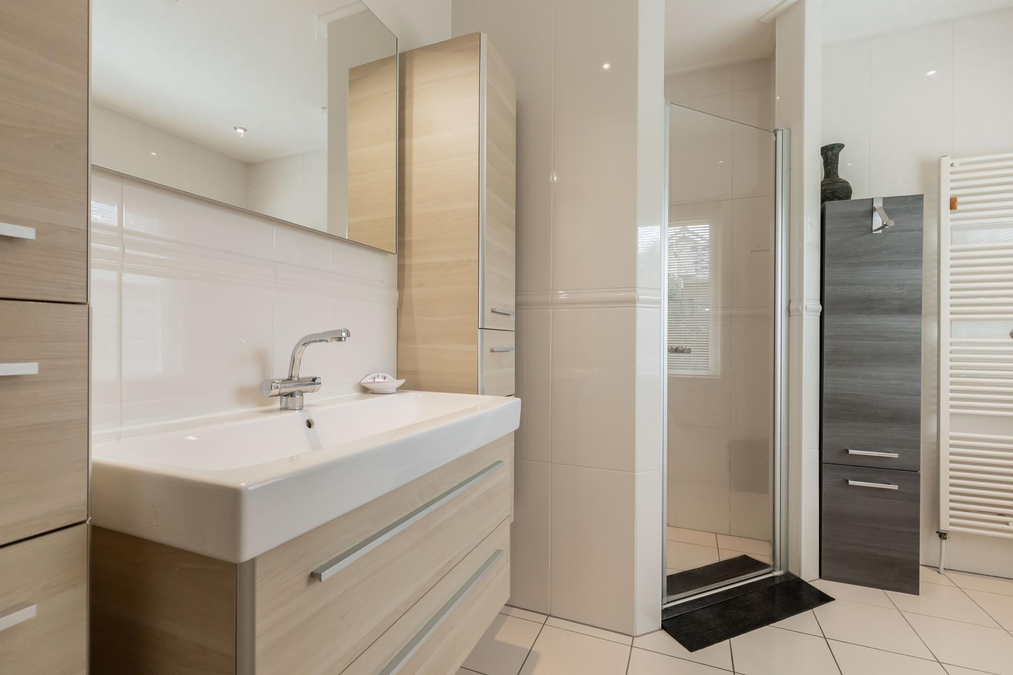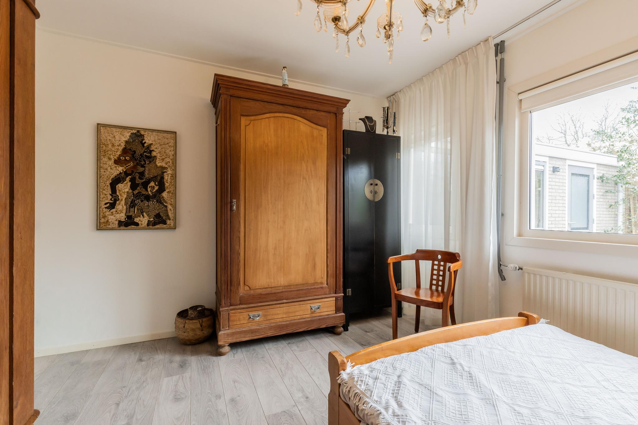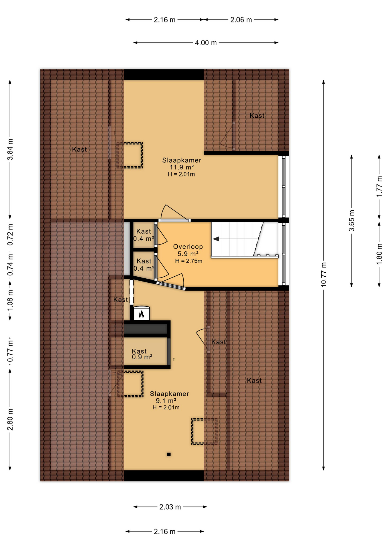 Via een vaste trap bereikt u de overloop met twee vaste kasten. Aan de rechterkant is een mooie slaap/-werkkamer. Door de dakkapel is hier een goede stahoogte en beschikt de kamer over veel licht. Aan de linkerzijde van de overloop is een tweede kamer. Hier is de opstelling van de cv ketel en meer vaste kasten.