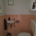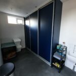 Overloop, drie slaapkamers, badkamer met douche, toilet en wastafel, bergkast.