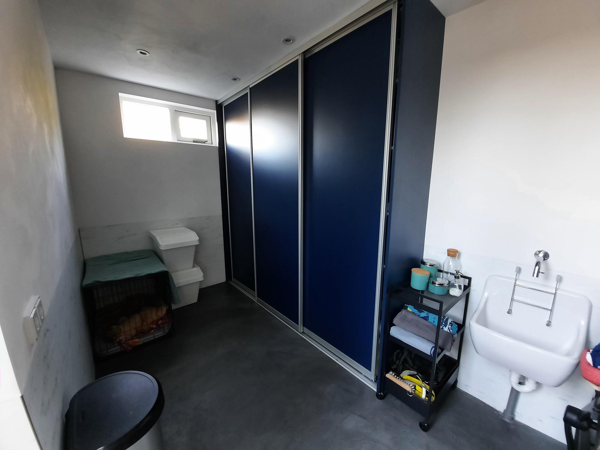 Overloop, drie slaapkamers, badkamer met douche, toilet en wastafel, bergkast.