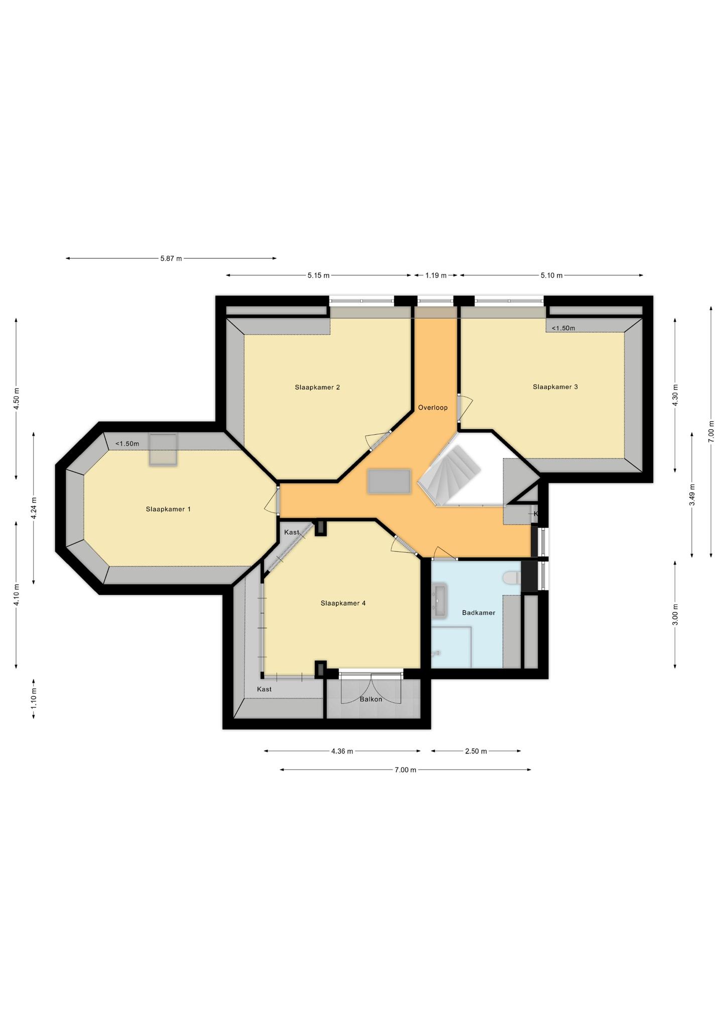 Zeer ruime overloop met vier grote slaapkamers. De slaapkamer naast de badkamer is de ouder slaapkamer, deze is voorzien van een grote kastenwand en biedt toegang tot een balkon aan de voorzijde van de woning. De badkamer is voorzien van een douche, dubbele wastafel en tweede toilet. Natuurlijk is de badkamer voorzien van vloerverwarming.