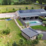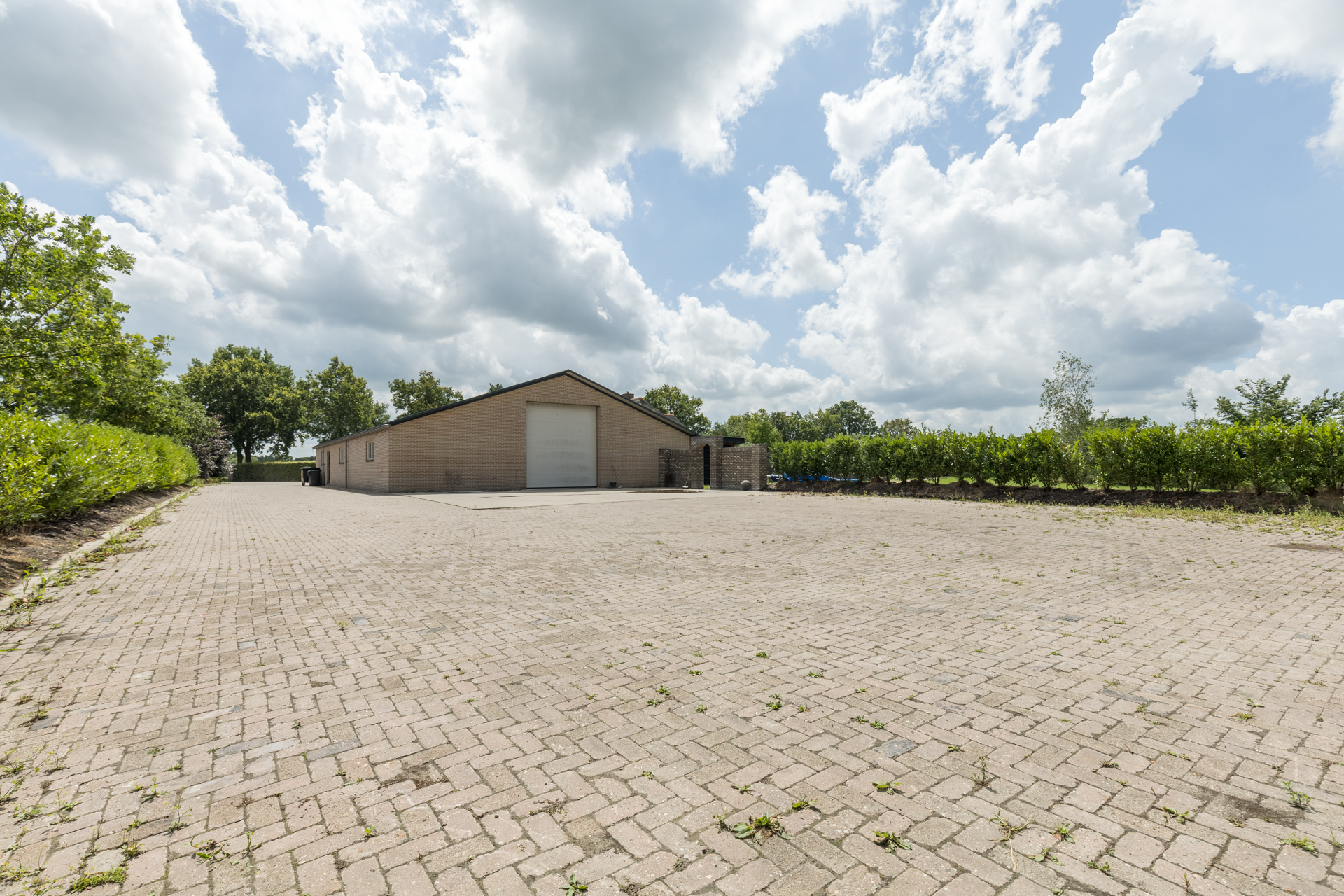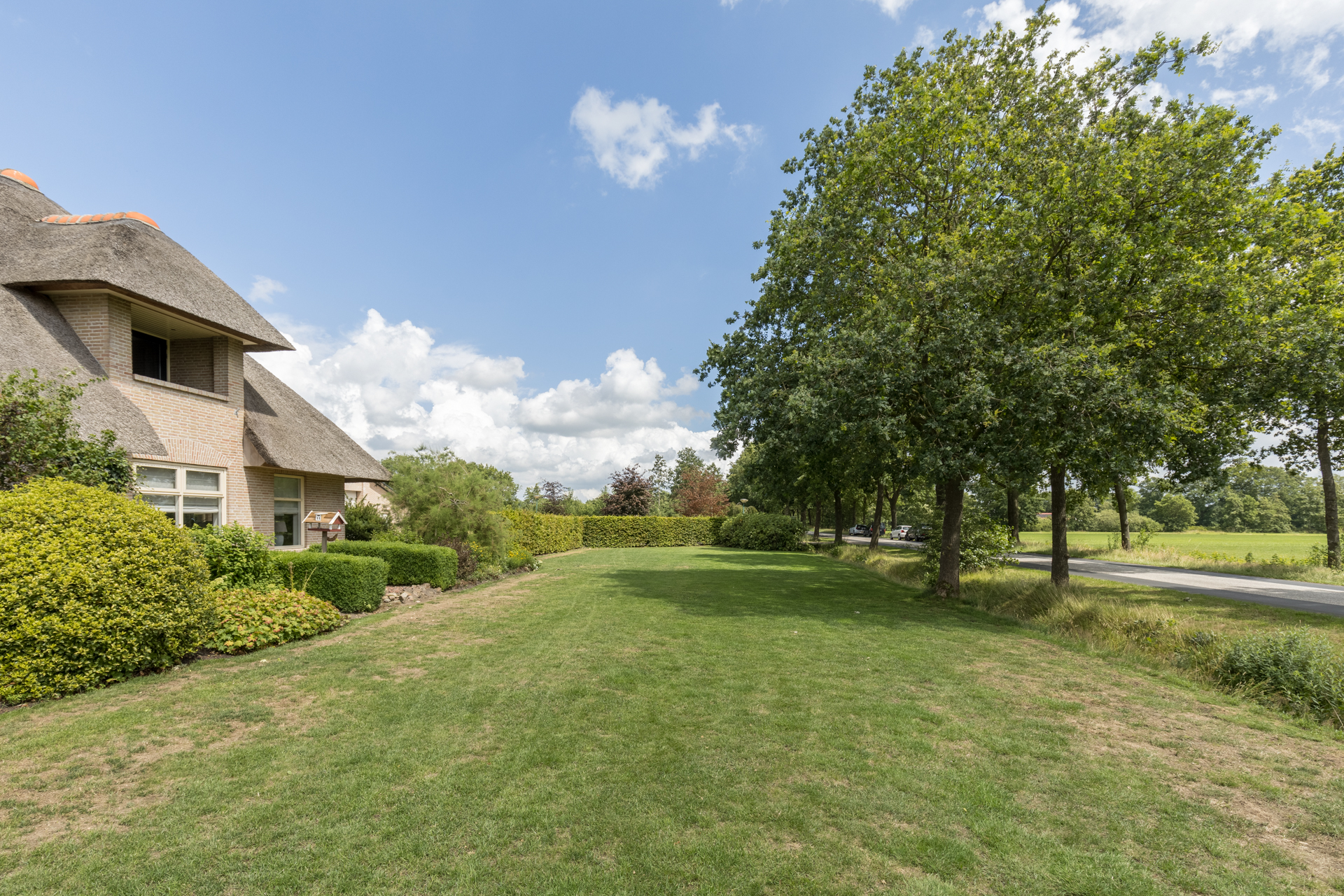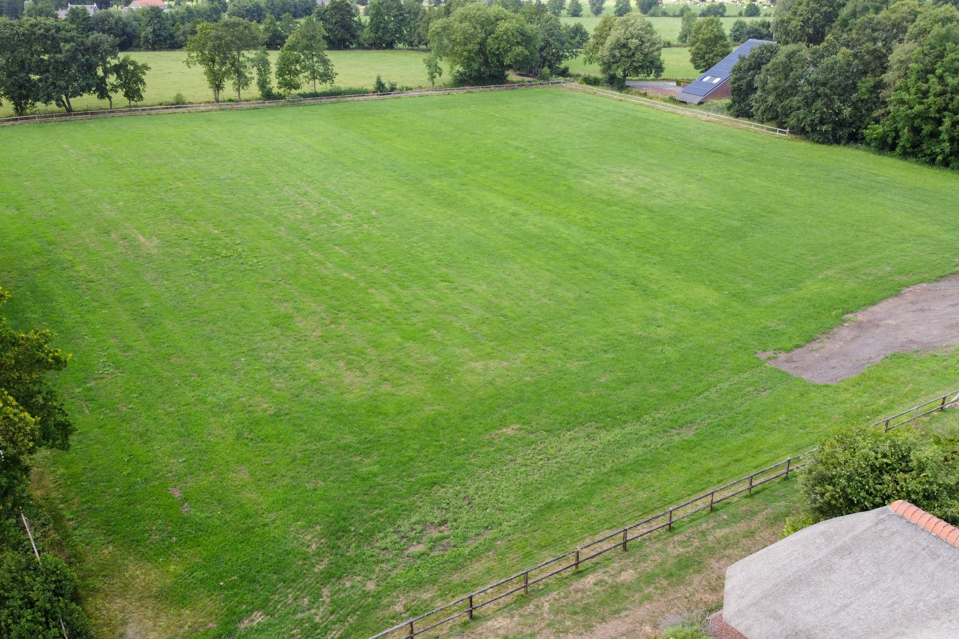 Via de achterdeur loopt u onder een pergola met volgroeide blauwe regen richting het zwembad. Het zwembad ligt heerlijk in de zon met naast het zwembad een poolhouse. Dit poolhouse is volledig af te sluiten en is voorzien van een houtkachel en een geheel nieuwe sauna. Vanuit het zwembad kijkt u uit over de vijver met naast de vijver een heerlijke veranda voor een gezellige barbecue. Hier is ook nog een ruimte welke als gastenverblijf kan fungeren. De volledig geïsoleerde loods/werkplaats ligt verscholen achter het poolhouse. Bij deze loods ligt een grote gedraineerde parkeerplaats die ook voor een paardenbak plaats kan maken.