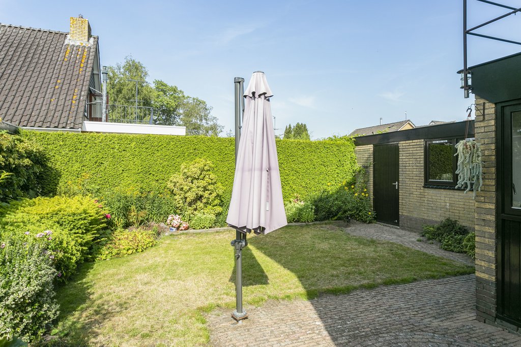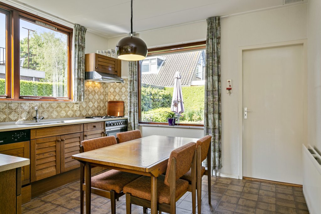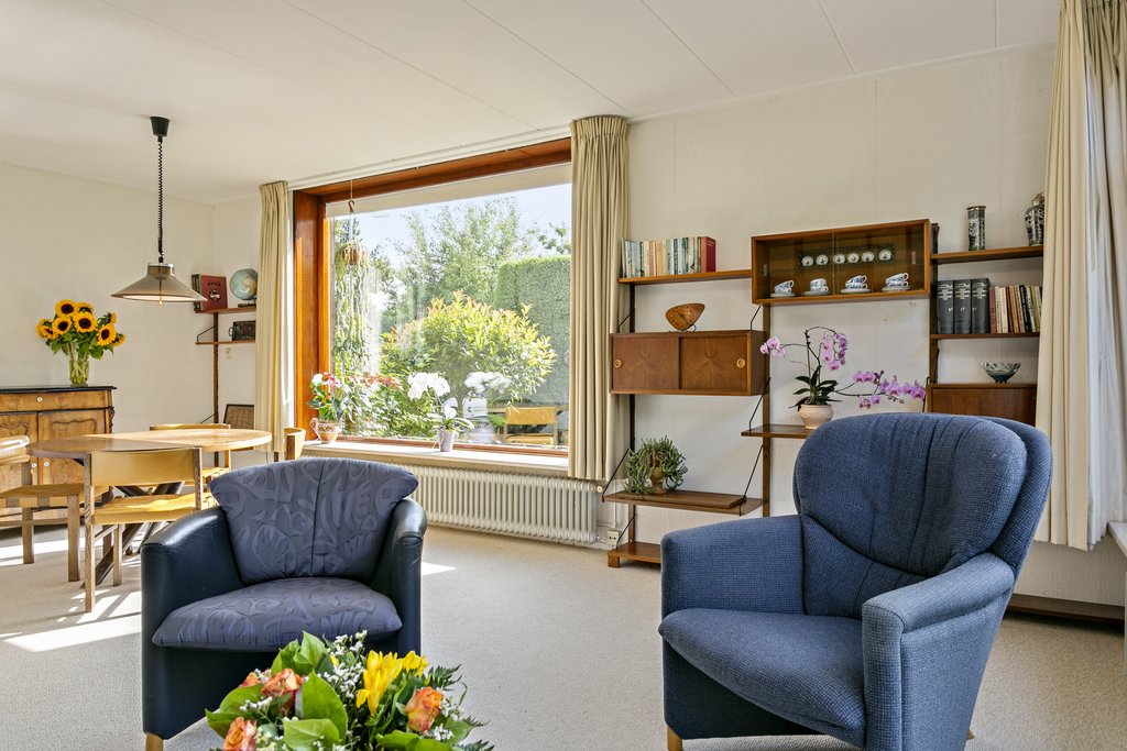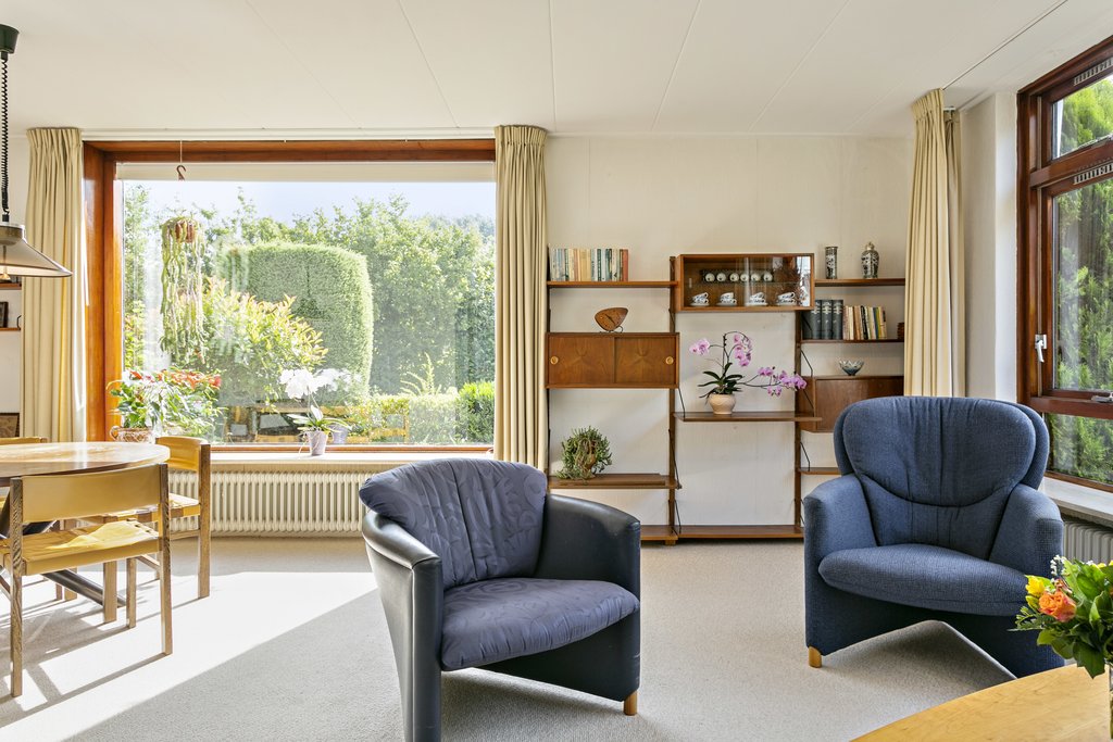 Bij de voordeur aangekomen komt u in ruime hal met vide met toegang naar L- vormige woonkamer, keuken met inbouwappatuur en extra kamer (te gebruiken als slaapkamer, werk/studeerkamer of bij de keuken te betrekken), toilet, ruime bijkeuken (ook ruimte voor badkamer erbij), leuke bloemenrijke tuin rondom de woning met losstaande garage waarin ruimte voor een auto en werkbank.