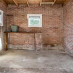 Via de voordeur in de hal zit een toilet, keldertje, woonkamer met openslaande deuren naar achtertuin, keuken, bijkeuken, achtertuin die naar smaak kan worden ingericht.