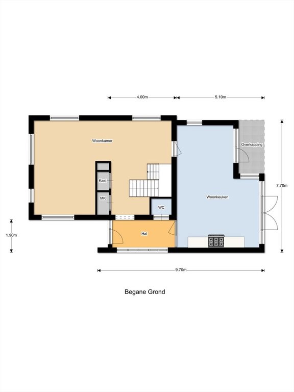Mogelijkheid om uit te breiden boven woonkeuken voor extra slaapkamers