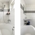 overloop, 3 slaapkamers, badkamer met bad en wastafel.