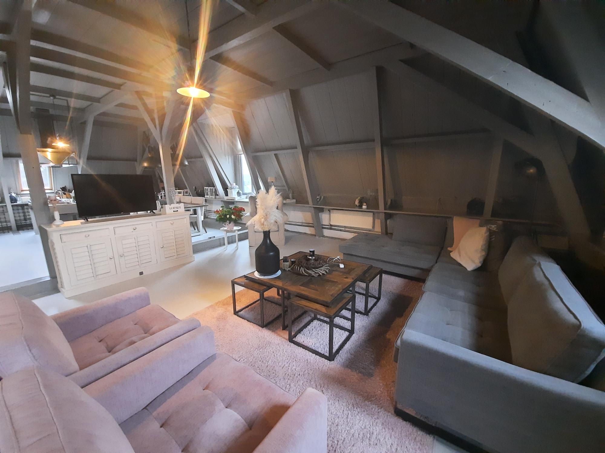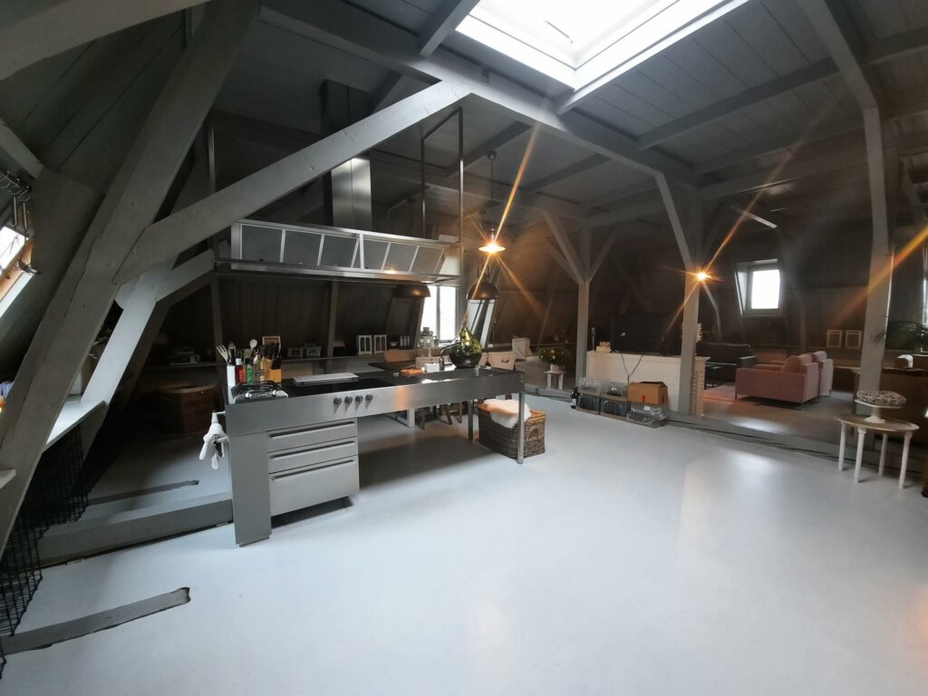 Dit prachtige exclusieve loft/ appartement ligt op de tweede (tevens bovenste) verdieping en is middels trappen via de hoofdingang bereikbaar.