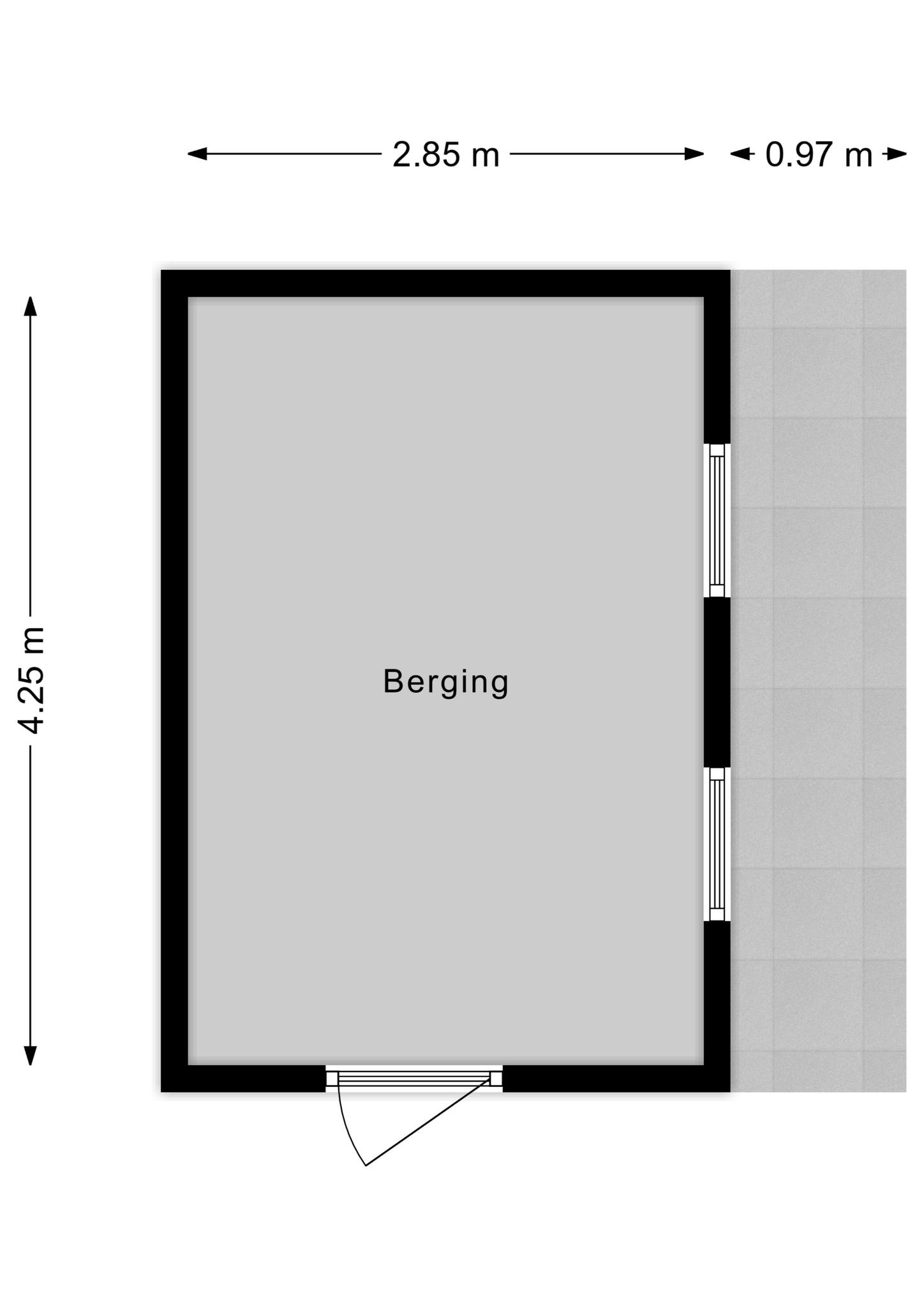 Via de eigen toegang aan de linkerzijde komt u aan de achterzijde waar nu een terras, een tuin en een ruime parkeerplaats is. Het geheel ligt op het noorden maar door de diepte komt de zon er makkelijk overheen. Daardoor kunt u zowel in de zon als in de schaduw zitten.