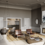 ornamentenplafond met een hoogte van bijna vier meter. Naast de woonkamer is er de
