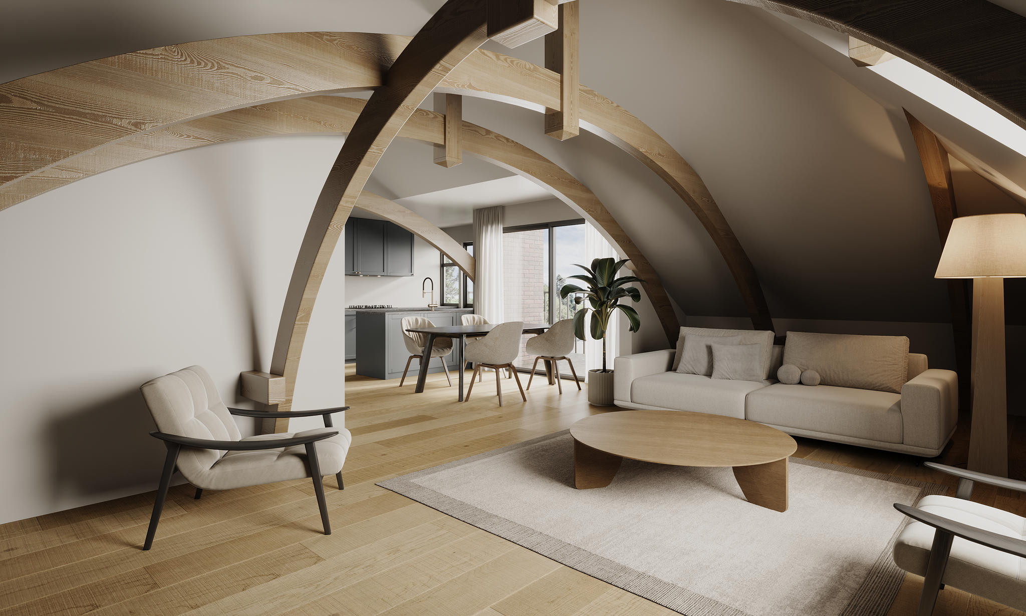Wonen in appartement zes is karakter. Al die prachtige gebogen spanten, die enorm diepe