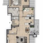 van ca 10 m2. Centraal in het appartement ligt de woonkeuken. Het aparte toilet is