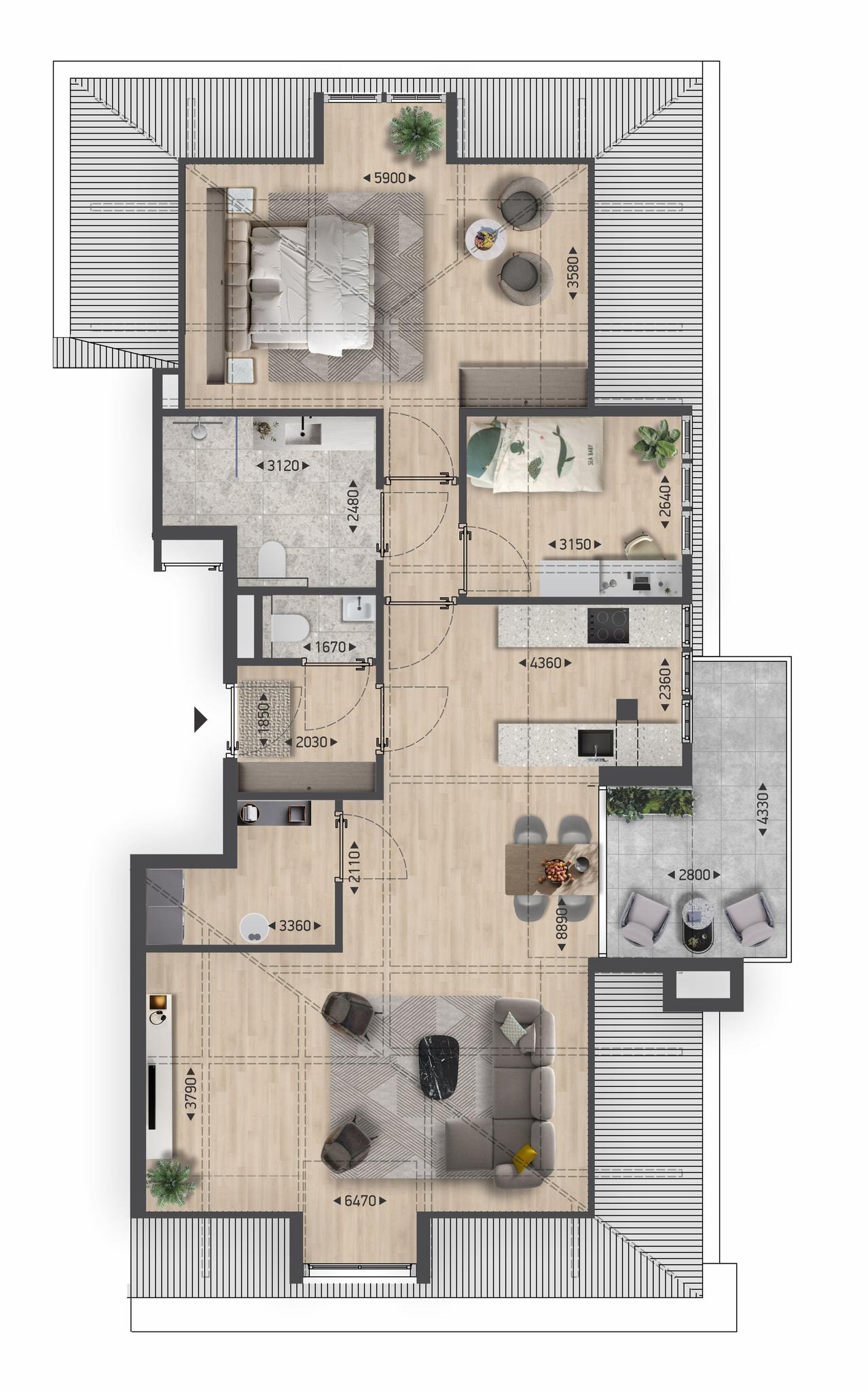 – De appartementen worden opgeleverd zonder badkamer, toilet en keuken