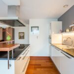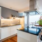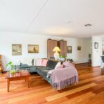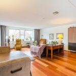 De royale woonkamer (ca. 60m2) gaat over in de luxe open keuken. Deze is voorzien van een kookeiland, eet bar en ingebouwde vaatwasser en combi-magnetron.
