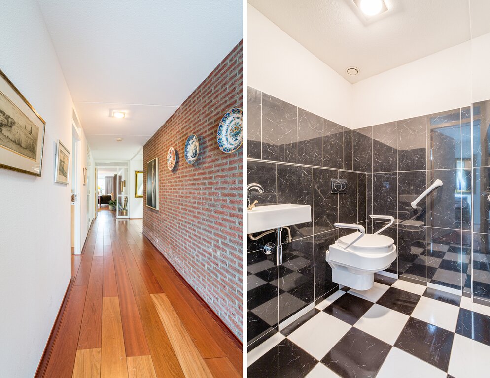 Vanuit de ruim opgezette hal zijn diverse woonruimtes bereikbaar, zoals 2 slaapkamers, de toiletruimte met fonteintje en de badkamer voorzien van ligbad, douche en dubbele wastafel.