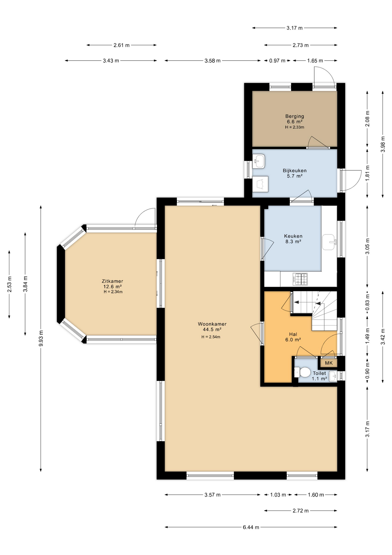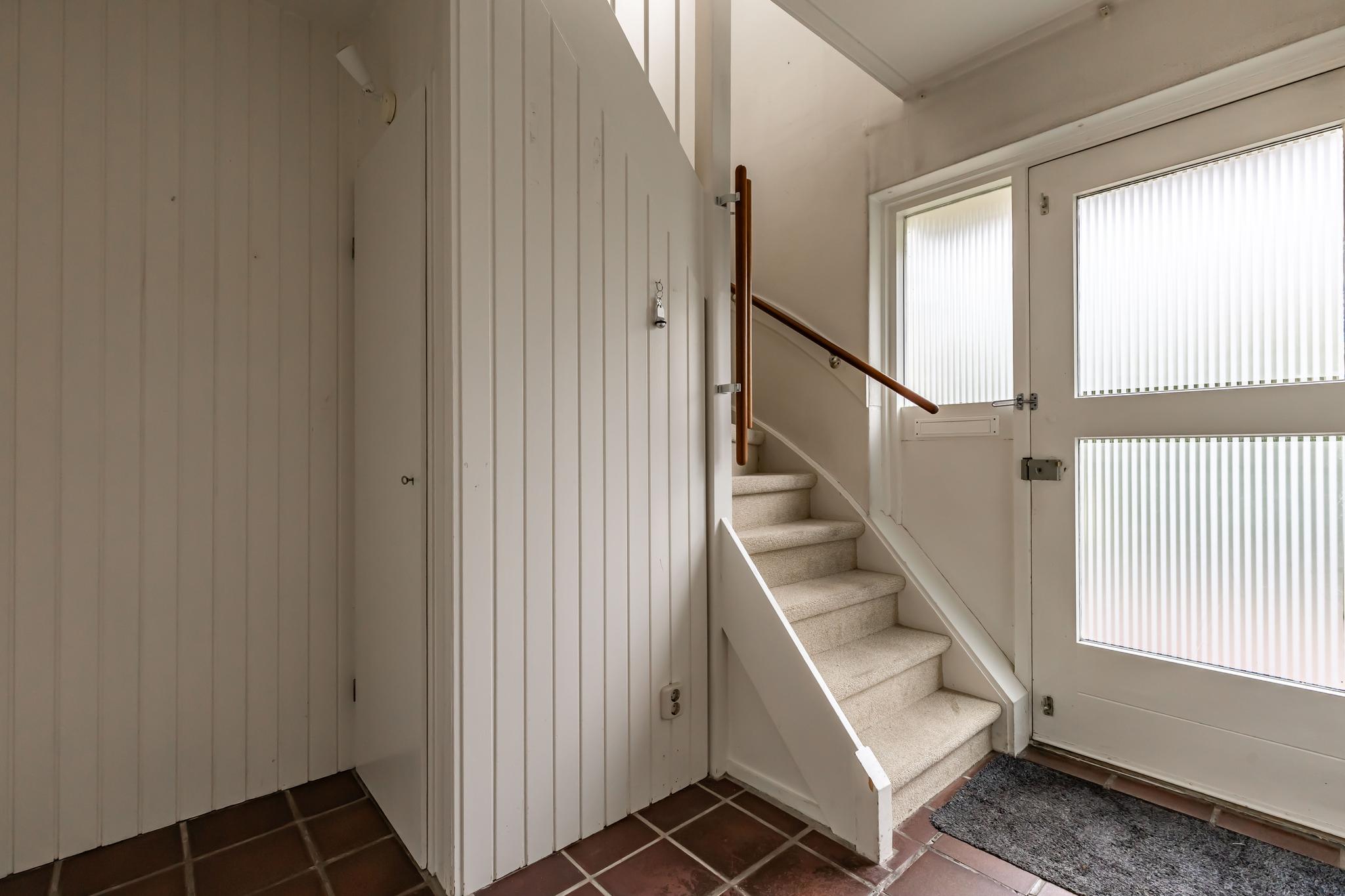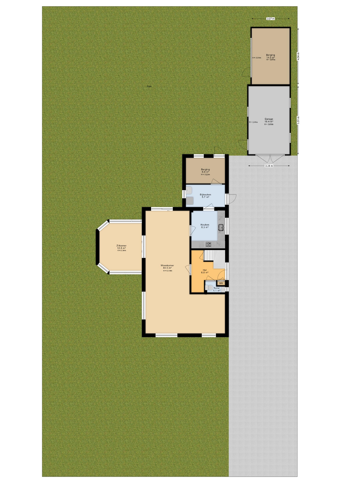 Als u binnenkomt bent u al via de lange oprit met plek voor meerdere auto’s naar de voordeur gelopen. In de entreehal treft u het toilet en de verdiepte trapkast aan. U loopt door naar de verrassend lichte en ruime woonkamer, voorzien van schuifdeur naar terras. Aan de woonkamer is een heerlijke serre gebouwd, wat de woonkamer net dat beetje extra geeft. De dichte keuken is desgewenst vrij eenvoudig te betrekken bij de woonkamer. Achter de keuken ligt een dubbele bijkeuken. Vanuit de bijkeuken loopt u naar buiten, de ruime besloten achtertuin in. U heeft hier de garage en de daarachter gelegen schuur. U wandelt via de zijtuin en voortuin terug naar de voorkant van het huis.