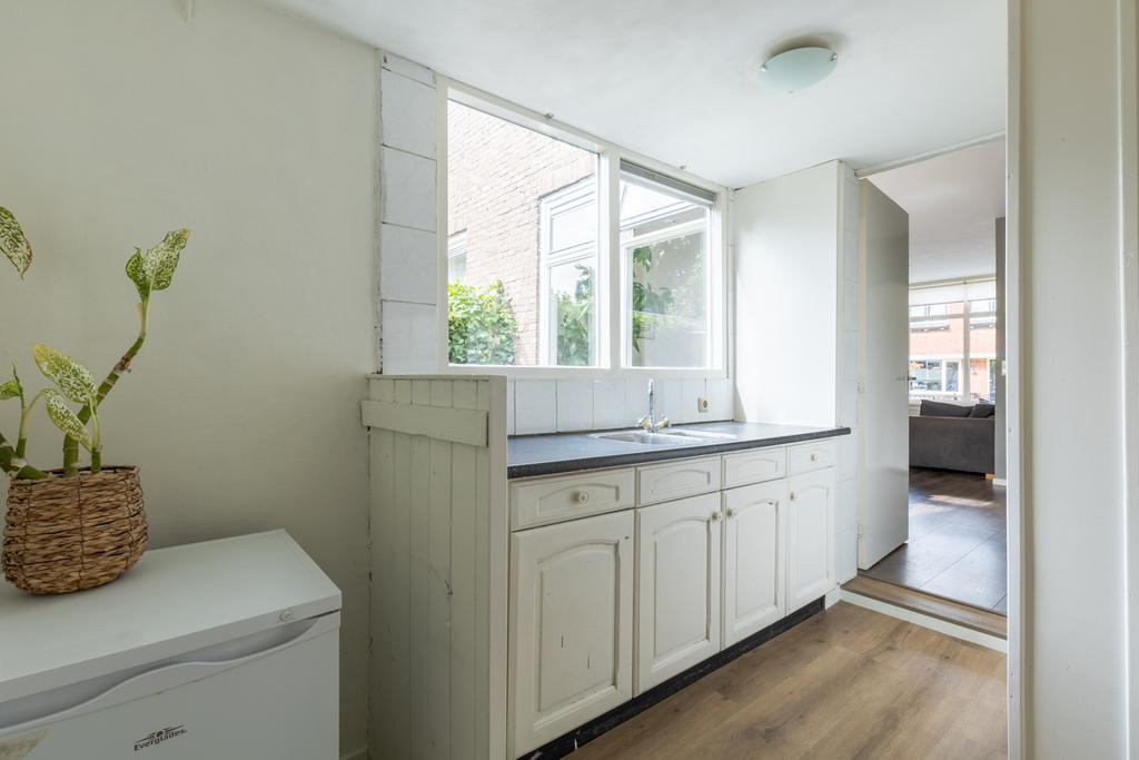 Entree, hal, bergkast, open keuken met inbouwapparatuur, eethoek en tv hoek, lange bijkeuken met uitgang naar steeg en achtertuin, toilet, washok, nieuwe badkamer (2018) met douche en ruime wastafel, diepe achtertuin met bergschuur (aan vervanging toe).