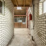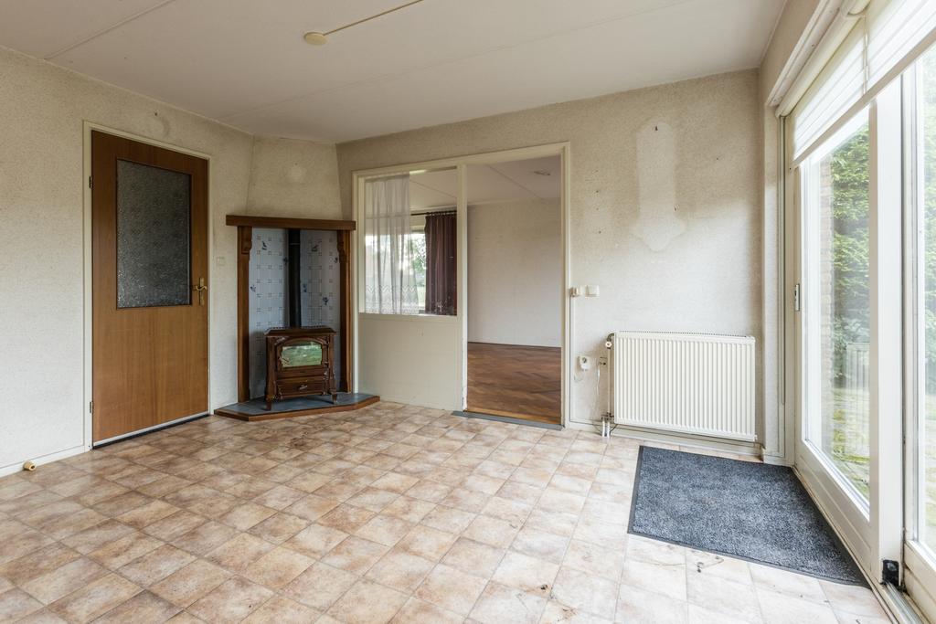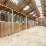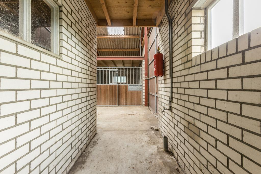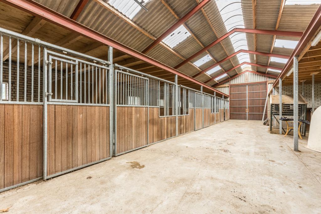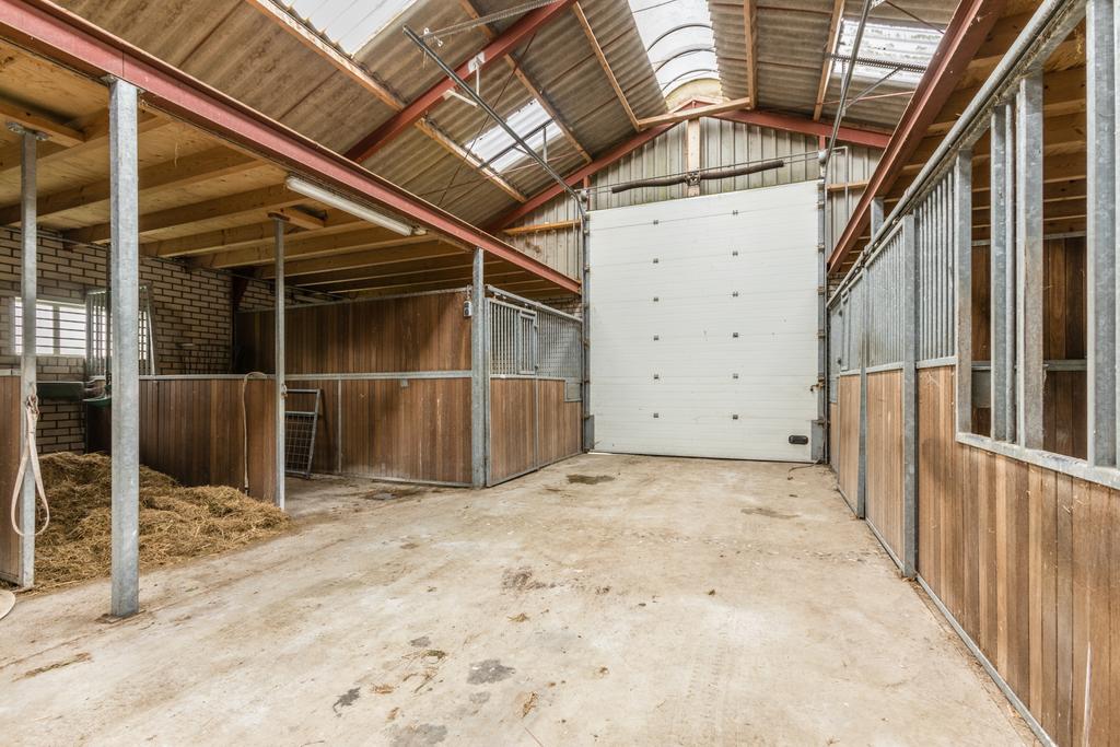 Entree, hal met toilet, slaapkamer en badkamer met bad, douche en wastafel. Woonkeuken met schuifpui naar de tuin. Woonkamer, bijkeuken met toilet. Garage, paardenbox bestaande uit zeven boxen met daarboven een hooiberging, zadelkamer. Rijtuigenschuur, tuin en landerijen naast en achter het geheel.
