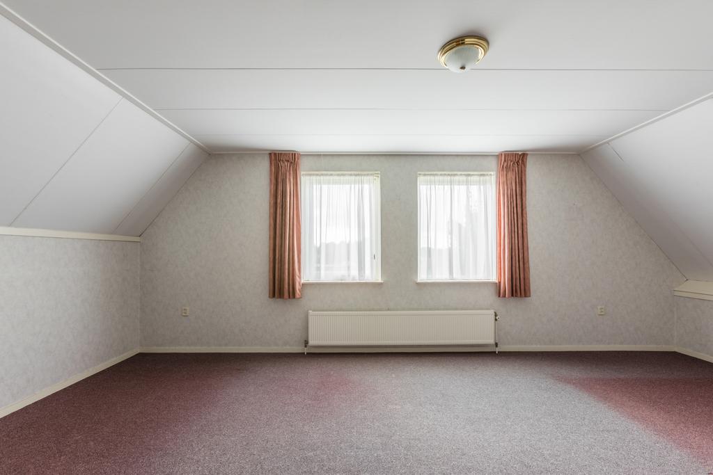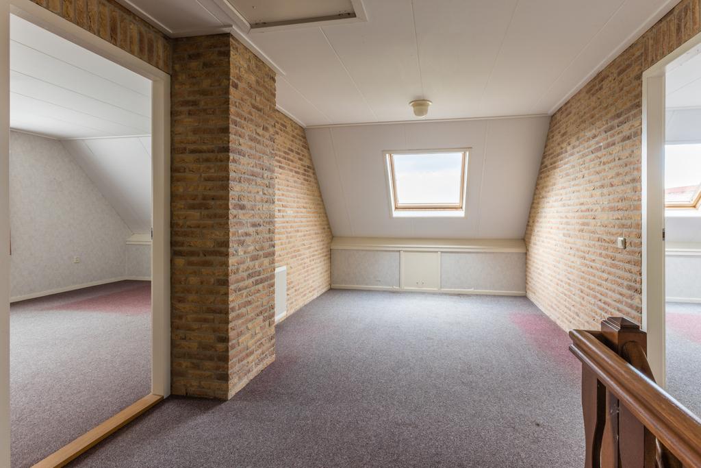 Grote overloop (ruimte voor extra badkamer), twee grote slaapkamers welke tot vier slaapkamers zijn op te splitsen.
