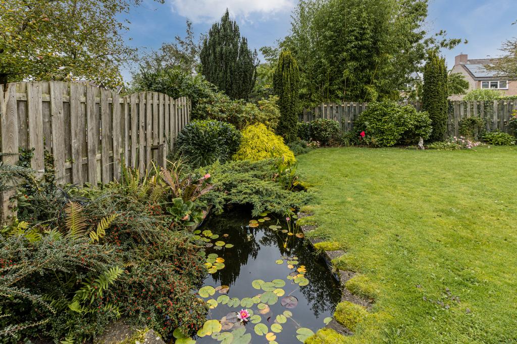 De zeer royale tuin rondom de woning heeft vele leuke en gezellige hoekjes. Het grootste gedeelte van de tuin ligt op het noorden, maar door alle ruimte schijnt de zon makkelijk over de woning heen waardoor er op elk moment van de dag ergens in de tuin van het zonlicht genoten kan worden.