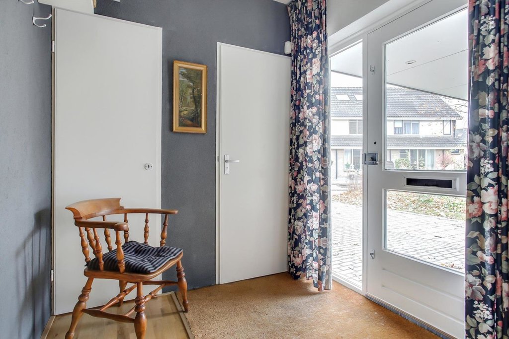 Entree, hal met toilet, woonkamer, eethoek, open keuken met inbouwapparatuur, bijkeuken, kantoorhoek, garage en ruime achtertuin.