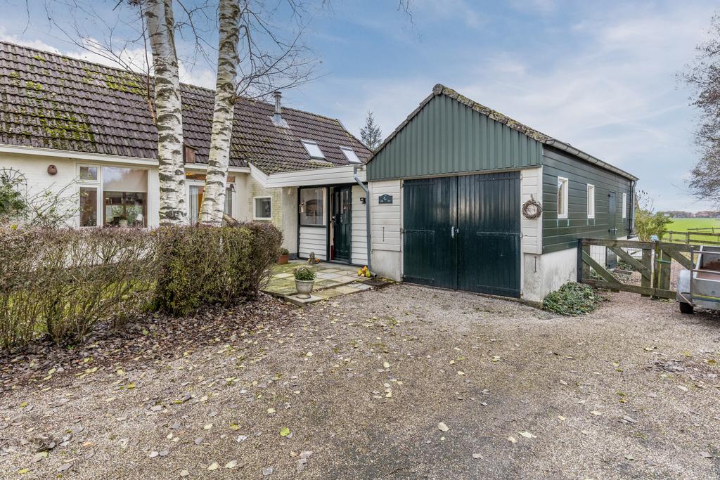 Naast de woning is er de ruime garage. Deze is voorzien van elektra en water en hier treft u de wasmachine opstelling. Achter de woning in de tuin is een zeer royale schuur. Deze is in gebruik als opslag voor de tuinspullen en de oogst van de moestuin. Hier bevind zich ook het binnen verblijf van de kippen. Achter de woning is een weiland waar de schapen en geiten hebben gestaan. Daar is nog een houten bergschuur.