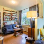 Entree, hal met toilet en aan de rechterzijde toegang tot de berging en garage. Rechtdoor is de deur naar de dichte keuken. In de keuken treft u het originele keukenblok aan met losse apparatuur en een keukenboiler. In de keuken is er toegang tot de kelder. In de kelder is de opstelplaats voor de CV ketel. De woonkamer is toegankelijk via de hal en de keuken. De woonkamer heeft een originele kastenwand en een houtkachel. Aan de voorzijde van de woning is de grote slaapkamer met kastenwand en de ensuite badkamer gelegen, hiernaast bevindt zich de studeerkamer.