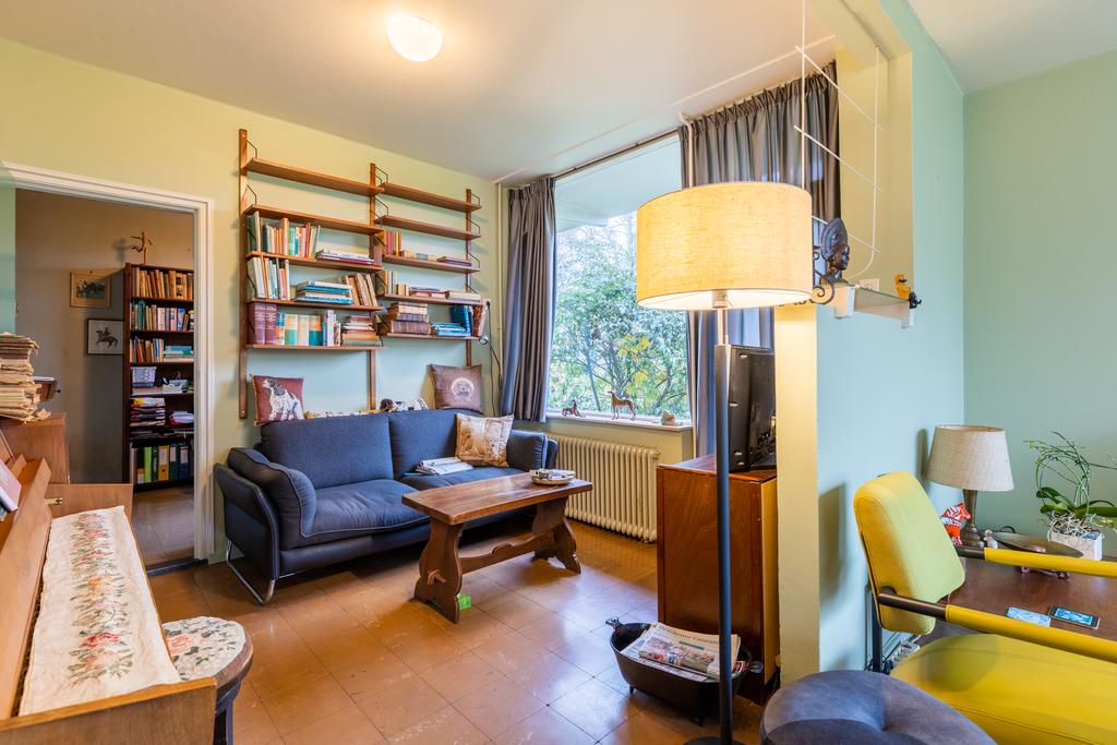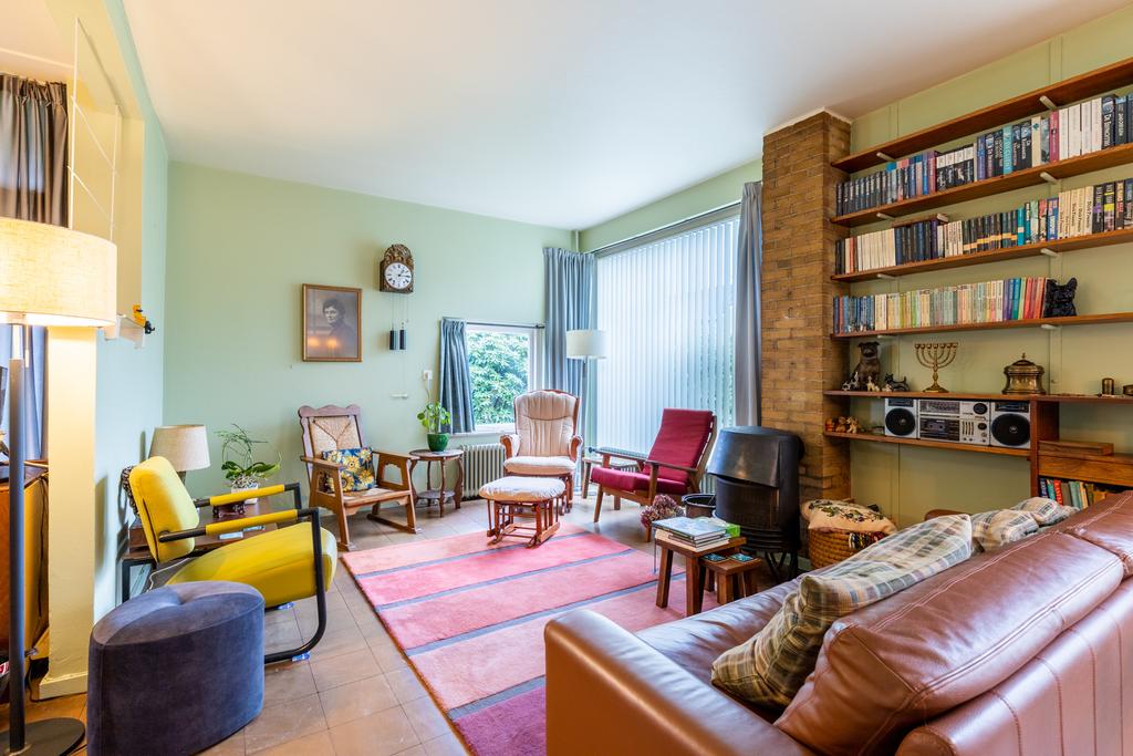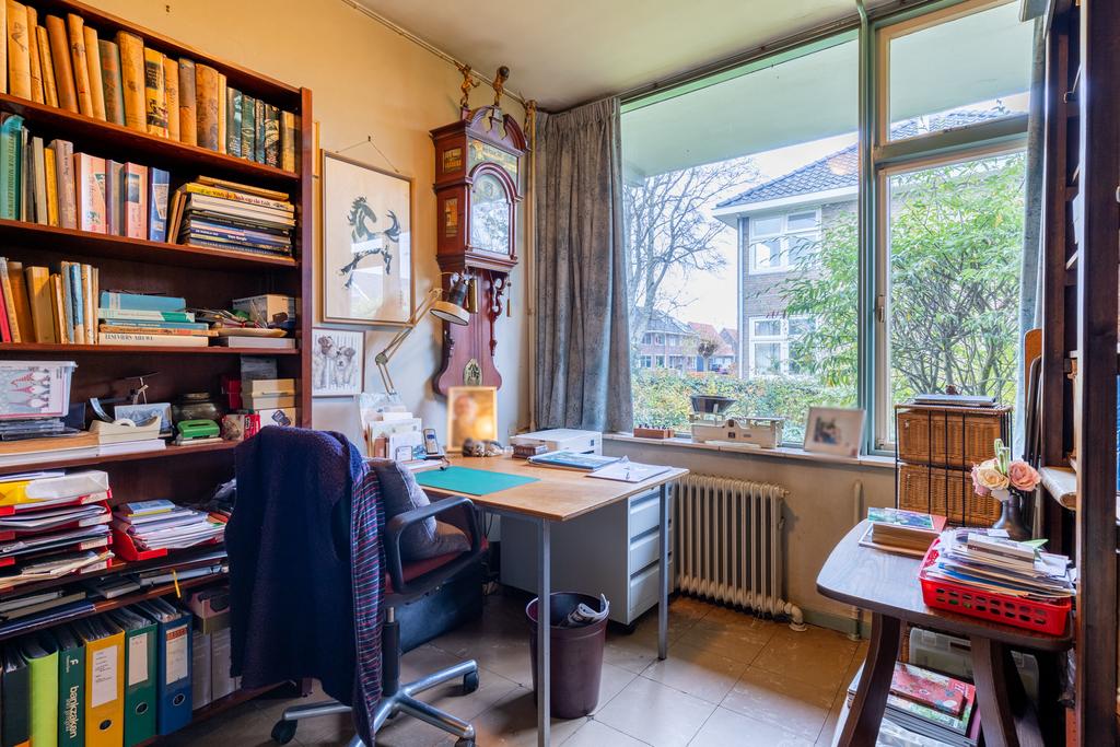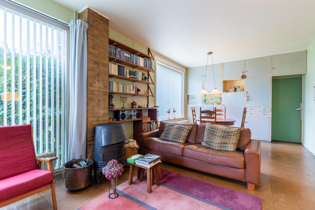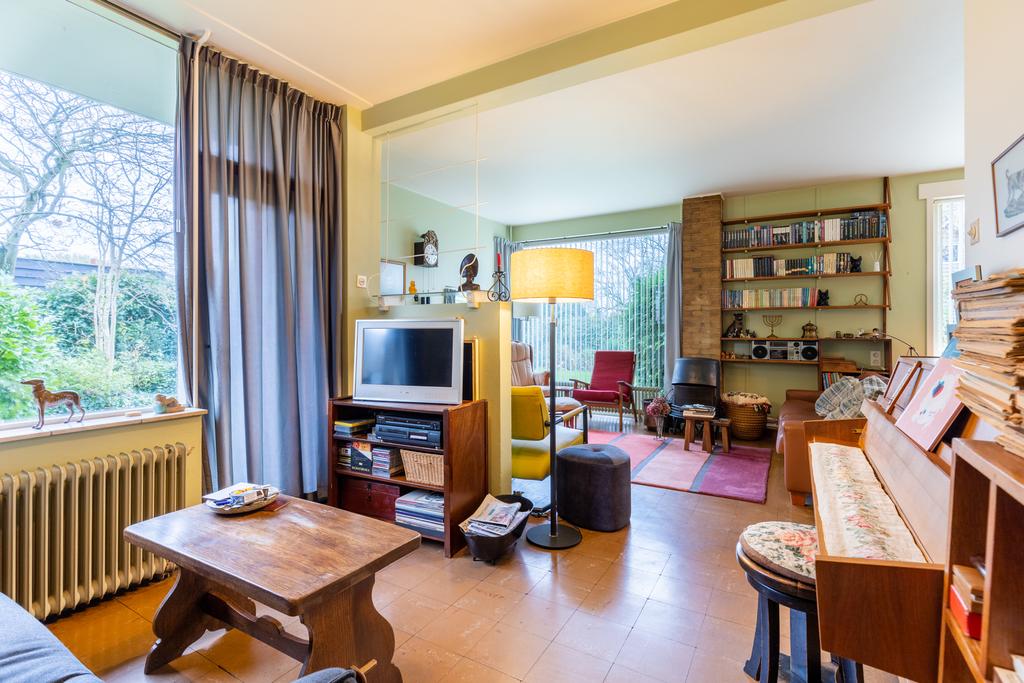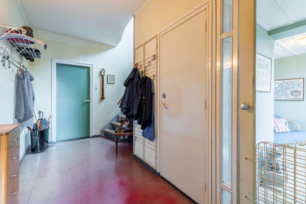 Entree, hal met toilet en aan de rechterzijde toegang tot de berging en garage. Rechtdoor is de deur naar de dichte keuken. In de keuken treft u het originele keukenblok aan met losse apparatuur en een keukenboiler. In de keuken is er toegang tot de kelder. In de kelder is de opstelplaats voor de CV ketel. De woonkamer is toegankelijk via de hal en de keuken. De woonkamer heeft een originele kastenwand en een houtkachel. Aan de voorzijde van de woning is de grote slaapkamer met kastenwand en de ensuite badkamer gelegen, hiernaast bevindt zich de studeerkamer.