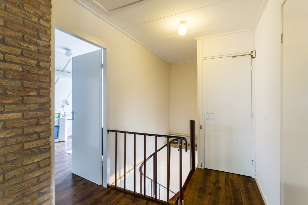 Via de trap bereikt u de overloop waar de toegang is naar drie slaapkamers, een badkamer met douche, toilet en wastafel en een aparte CV ruimte met berging.