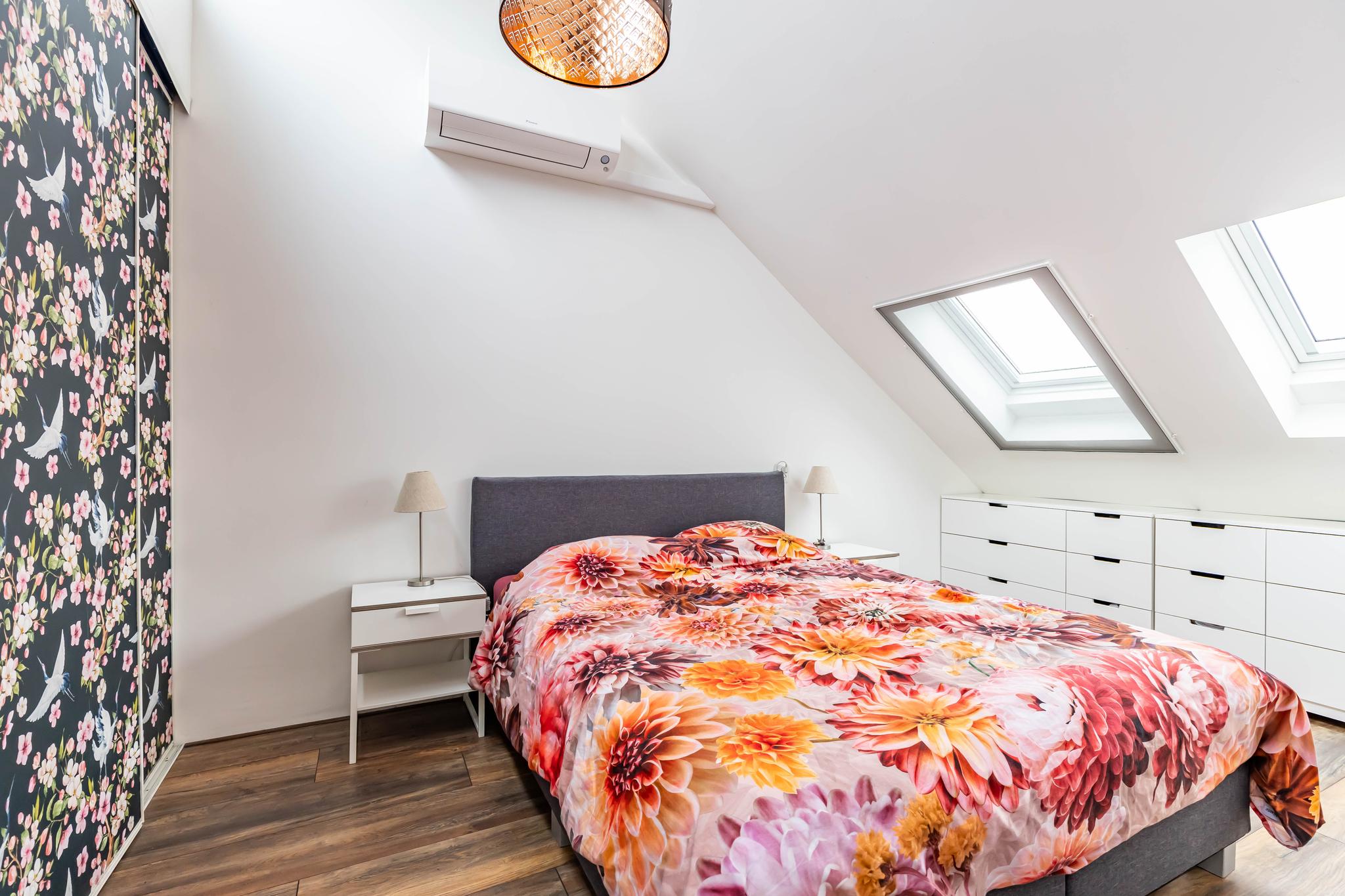 Deze zeer ruime leefverdiepbied heeft een lichte woonkamer en een open keuken. De keuken, geplaatst in 2020, is compleet uitgerust met een zespits fornuis met een afzuigkap, een vaatwasser, een koel-vriescombinatie en veel kastruimte. Tevens op deze verdieping een airco (2024) aanwezig.