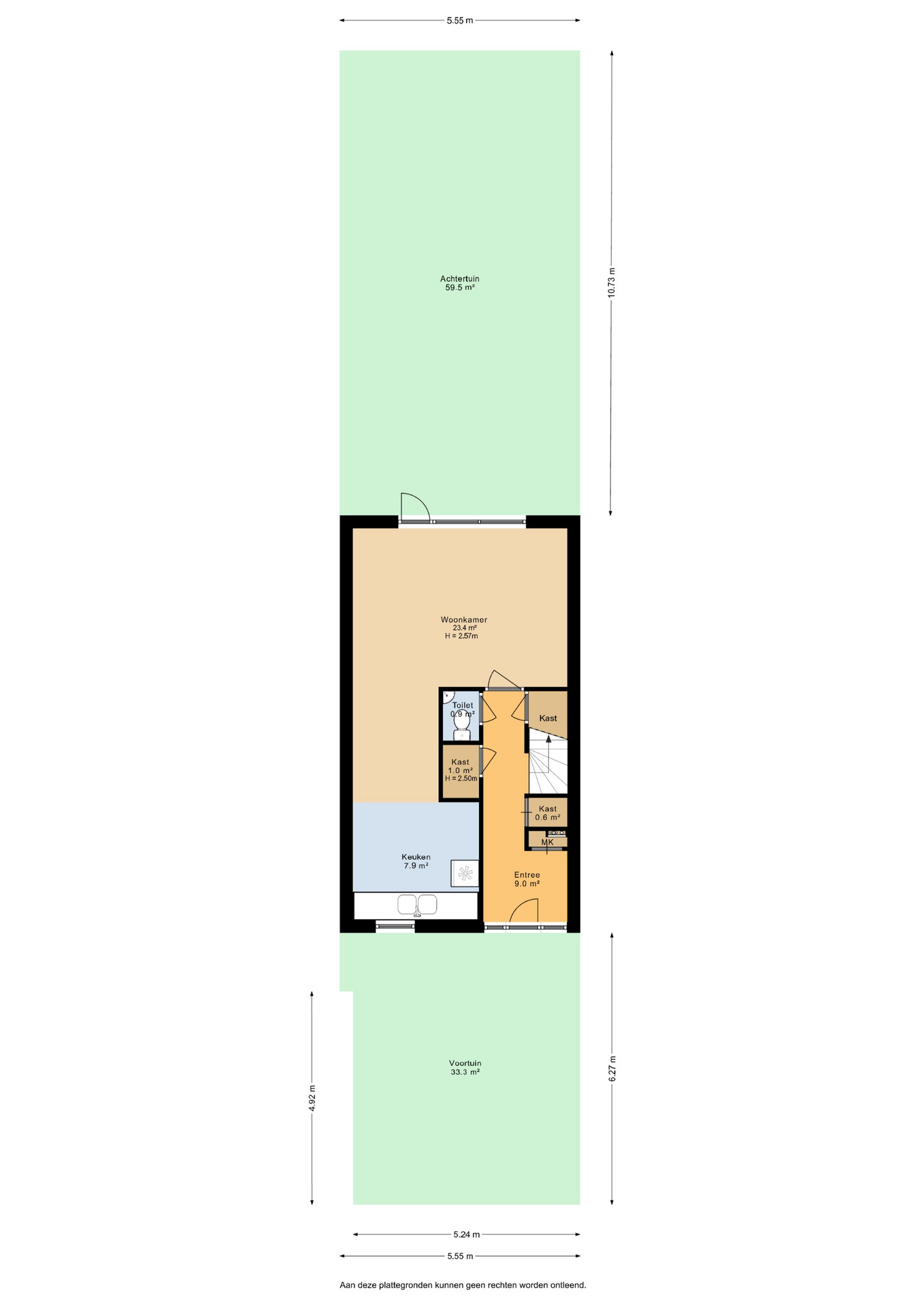 Deze verdieping wordt momenteel gebruikt als een praktijkruimte. De ruimte is licht, ruim en biedt toegang tot de achtertuin. Er is een keukenblok aanwezig, evenals veel vaste kastruimte en een toilet ook een mogelijkheid om dit op te toveren tot een extra woonkamer of iets dergelijks.