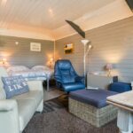 relaxruimte. Een slaapkamer met badkamer op begane grond. De woning staat in een volgroeide