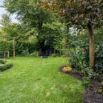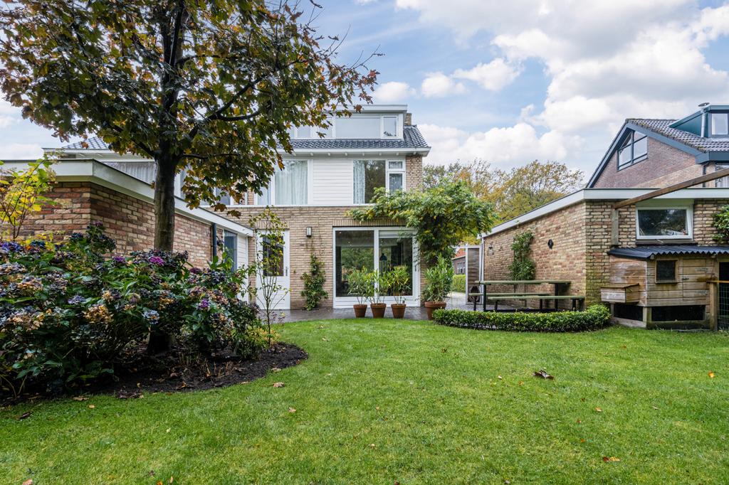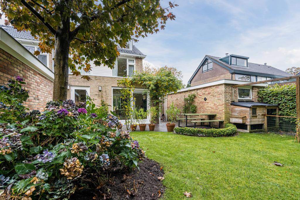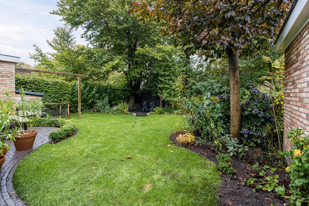 Via de schuttingdeur tussen de garage en de woning, kunt u de speels ingedeelde achtertuin bereiken.