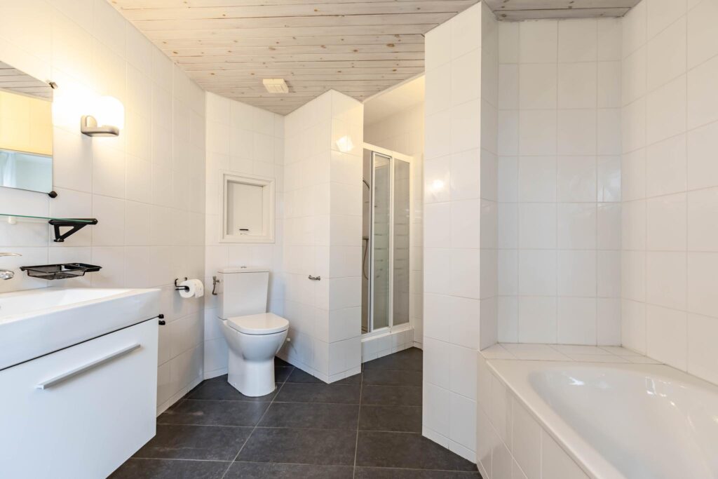 Eerste verdieping – Op de eerste verdieping zijn twee ruime slaapkamers en drie handige bergruimtes te vinden. Hier is ook de Cv-ketel geplaatst. De tweede badkamer is compleet met een douche, een toilet en een wastafel, ideaal voor gasten of gezinsleden.
