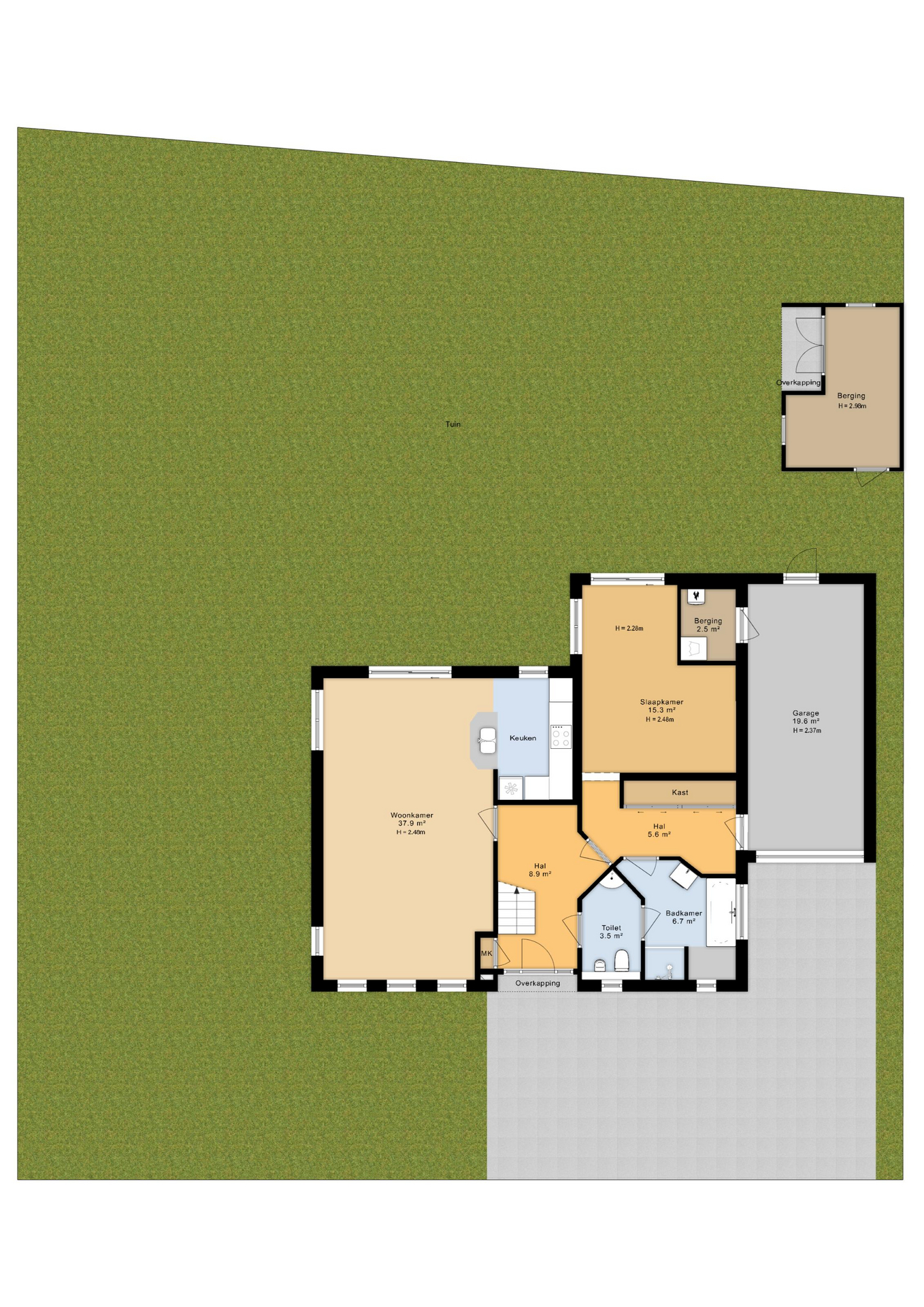 Via een royale entree met vide komt u de woning binnen. Aan de linkerkant treft u de lichte woonkamer aan. De halfopen keuken is keurig onderhouden en uitgerust met diverse apparatuur. Aan de rechterzijde van de entreehal bevindt zich het toilet. Deze heeft een doorgang naar de eerste badkamer. De badkamer is voorzien van een douche, een bad en een wastafel. Achter de badkamer is een zeer praktische kastenwand met doorgang naar de garage. Aan de tuinkant ligt de ruime slaapkamer. De garage is groot en geeft toegang tot de was-en stookruimte.